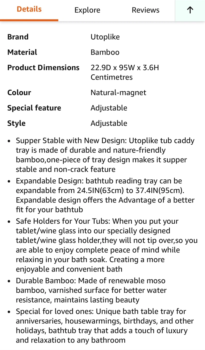Looking to add a touch of luxury to your bath time? This Utoplike bathtub caddy is made of durable and nature-friendly bamboo! It's designed to be stable and non-crack feature. The tray is adjustable from 24.5 inches (63cm) to 37.4 inches (95cm), ensuring a great fit for your bathtub. It also features safe holders for your tablet or wine glass, so you can relax without worry. Box included!