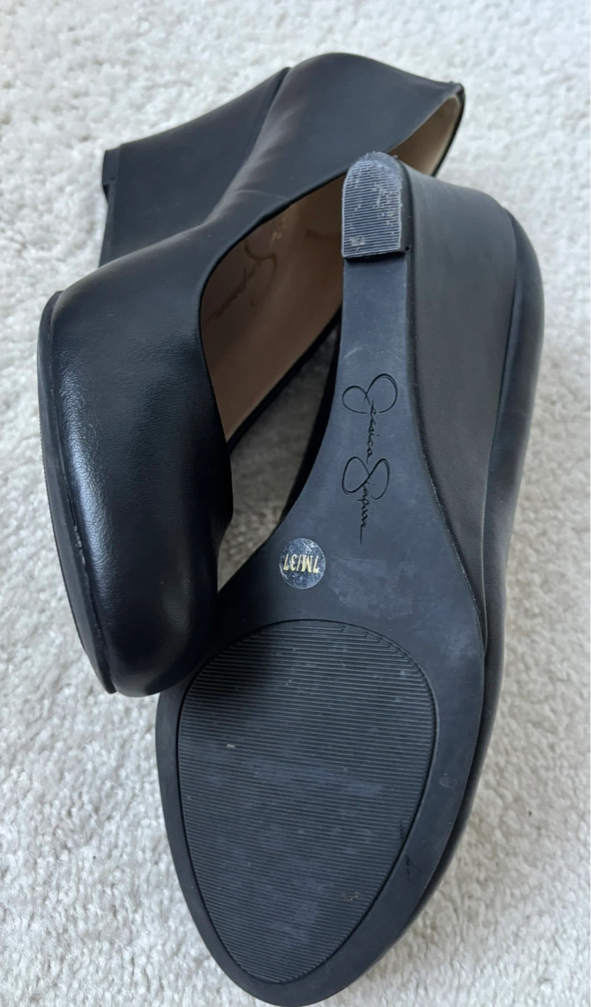 Selling a pair of Jessica Simpson black heels in size 7, 2.5 “ heel . Leather upper, very minimal wear on heel. All day comfort! They're in excellent condition and would be a stylish addition to your wardrobe!
