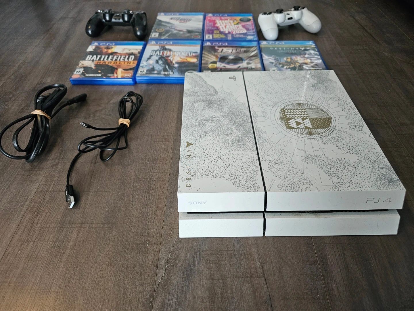 Selling a PlayStation 4 Destiny: The Taken King Limited Edition bundle! Includes the console, two controllers (one black, one white), and several games: