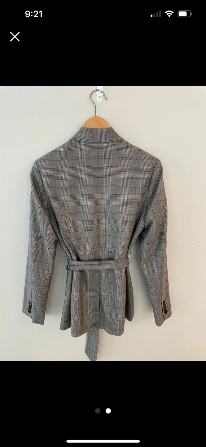 I'm selling a Petite blazer in a stylish plaid pattern. It features a flattering belted design. Perfect for adding a touch of sophistication to any outfit! Never worn.