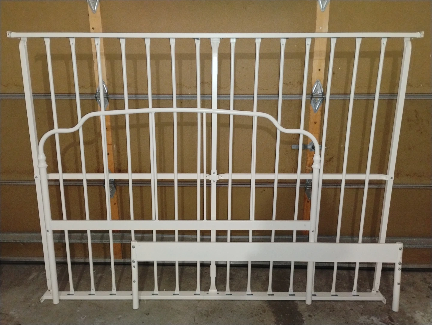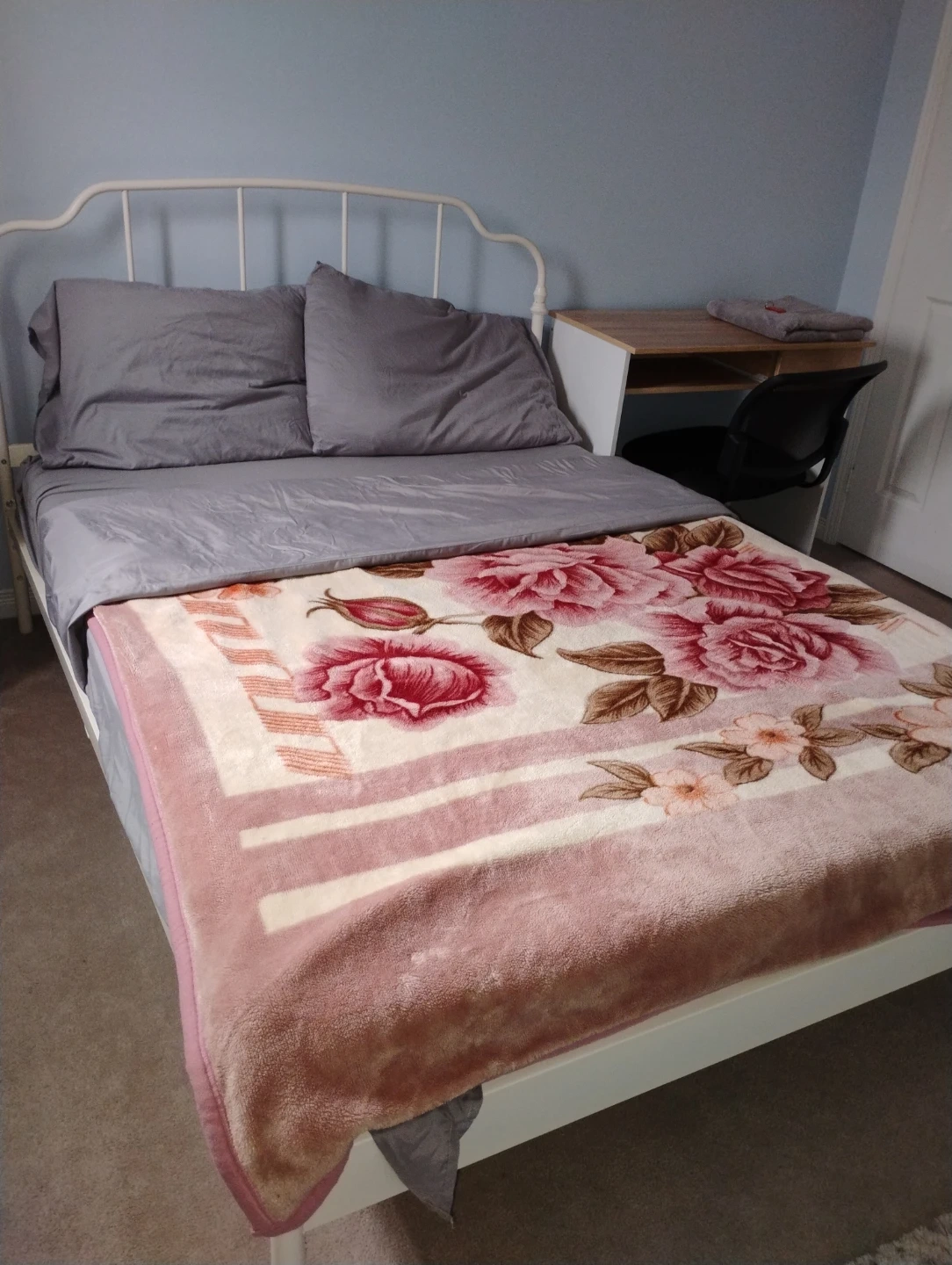 Selling a lovely white metal bed frame, 190x140 size. It's in great shape and ready for a new home. Perfect for adding a touch of elegance to your bedroom!