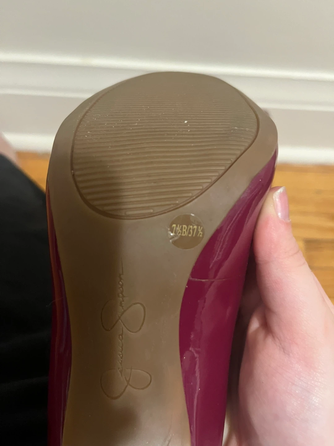 Selling a pair of Jessica Simpson heels in a beautiful wine colour! They are a size 7.5 B/37½. Perfect for adding a touch of elegance to any outfit! One shoe does has a little scuff in the front.