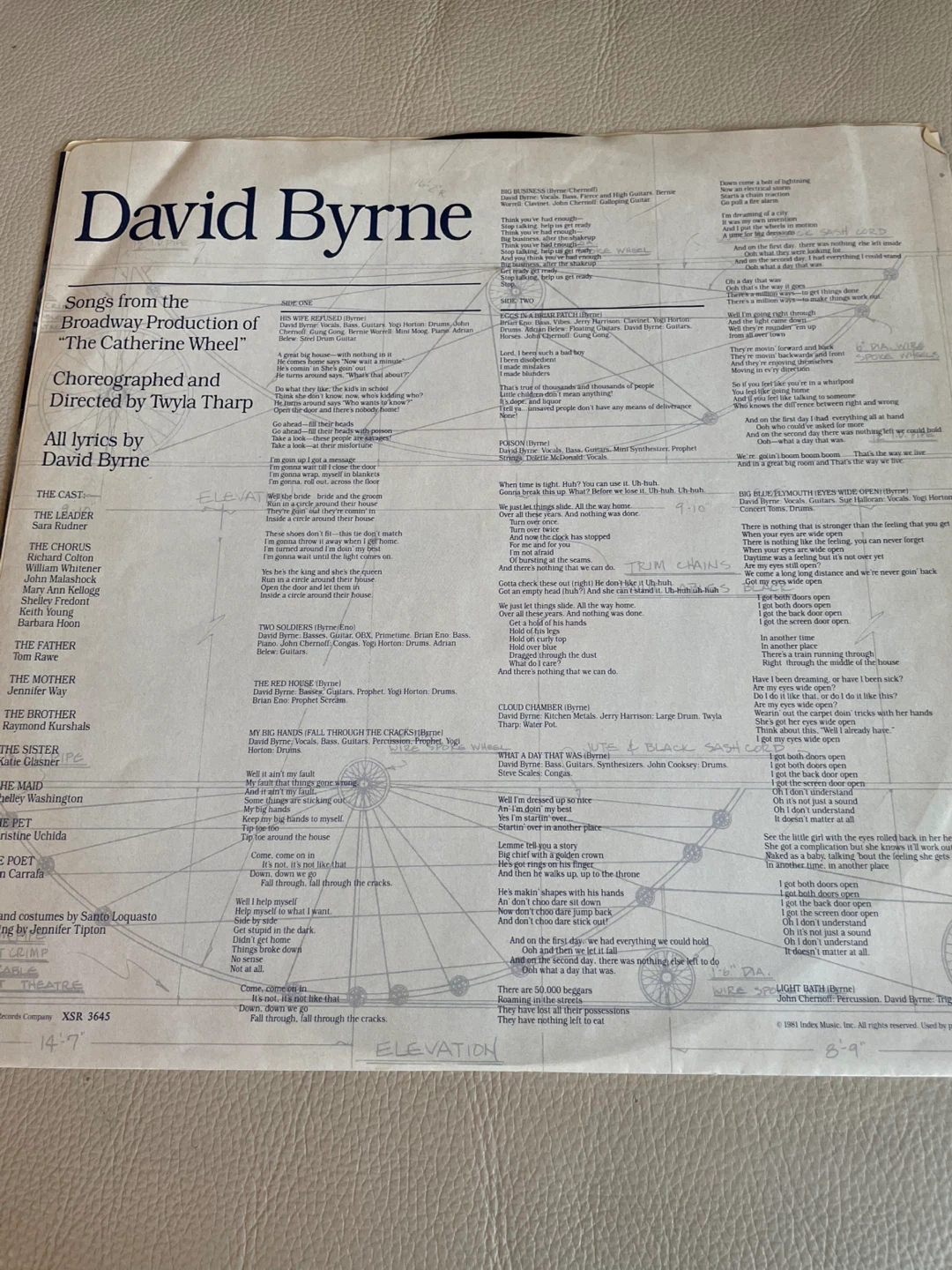 Selling a vinyl record of David Byrne's "The Catherine Wheel" Songs from the Broadway Production of "The Catherine Wheel" Choreographed and Directed by Twyla Tharp. Great condition!