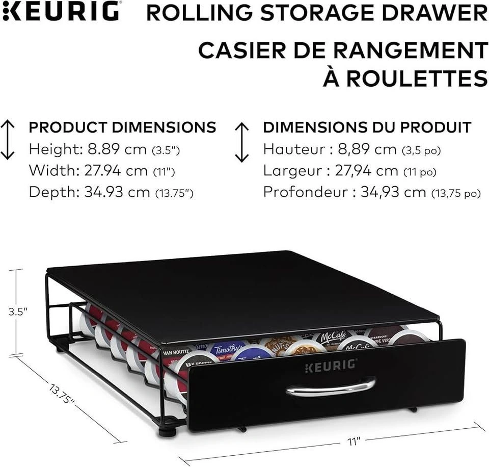 This Keurig Rolling Storage Drawer keeps all your K-Cups neatly organized and easily accessible. It also serves as a sturdy base for your Keurig machine to sit on — saving space and keeping your countertop clean.