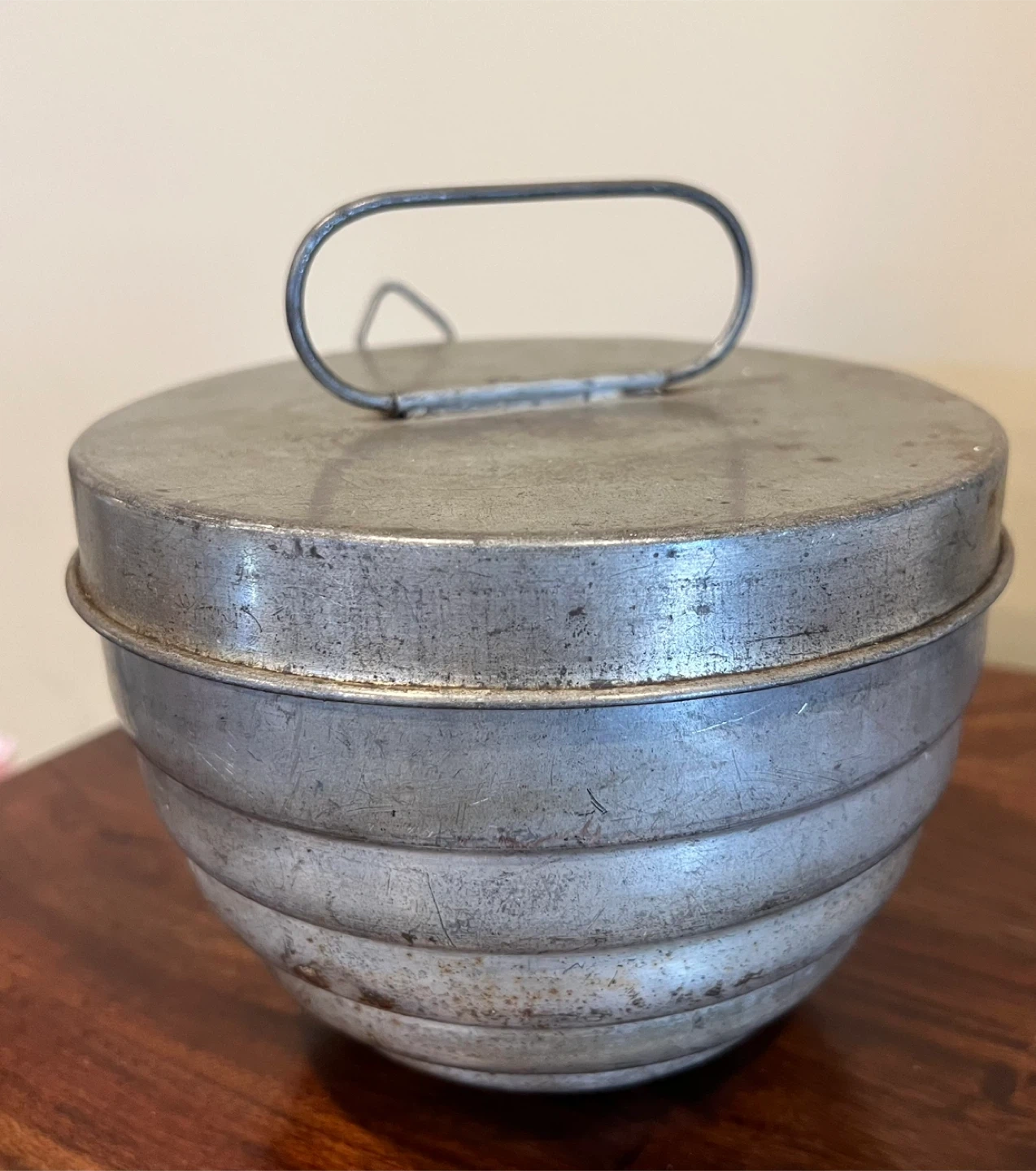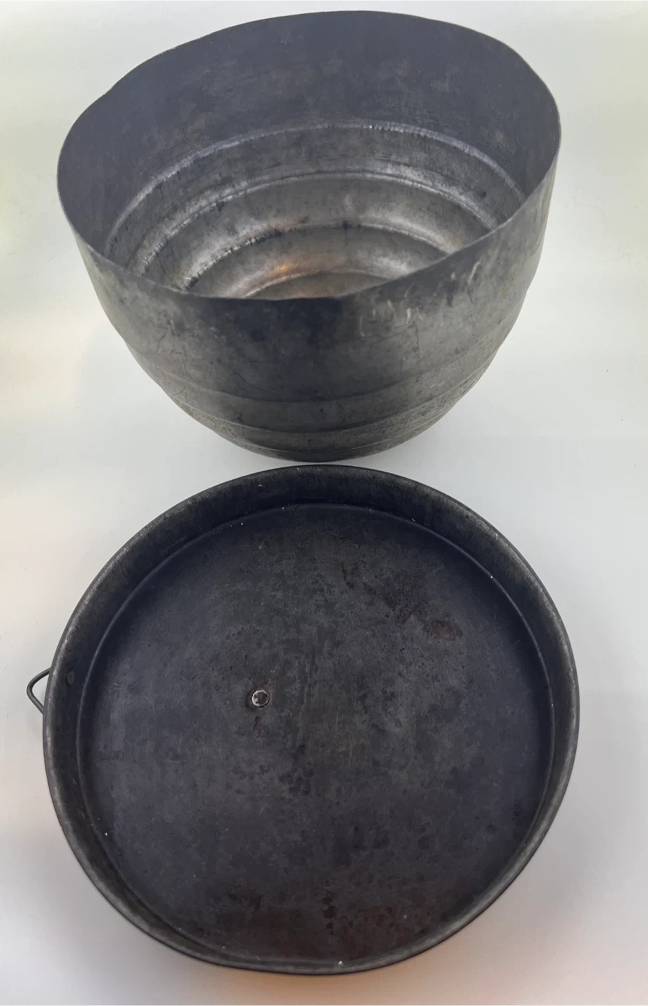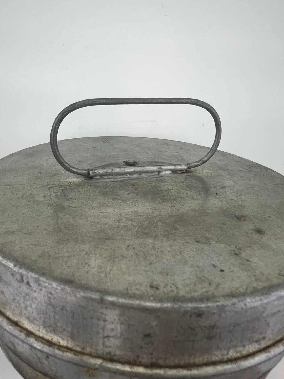 It’s lightweight but sturdy aluminum with a fitted lid and functional handle