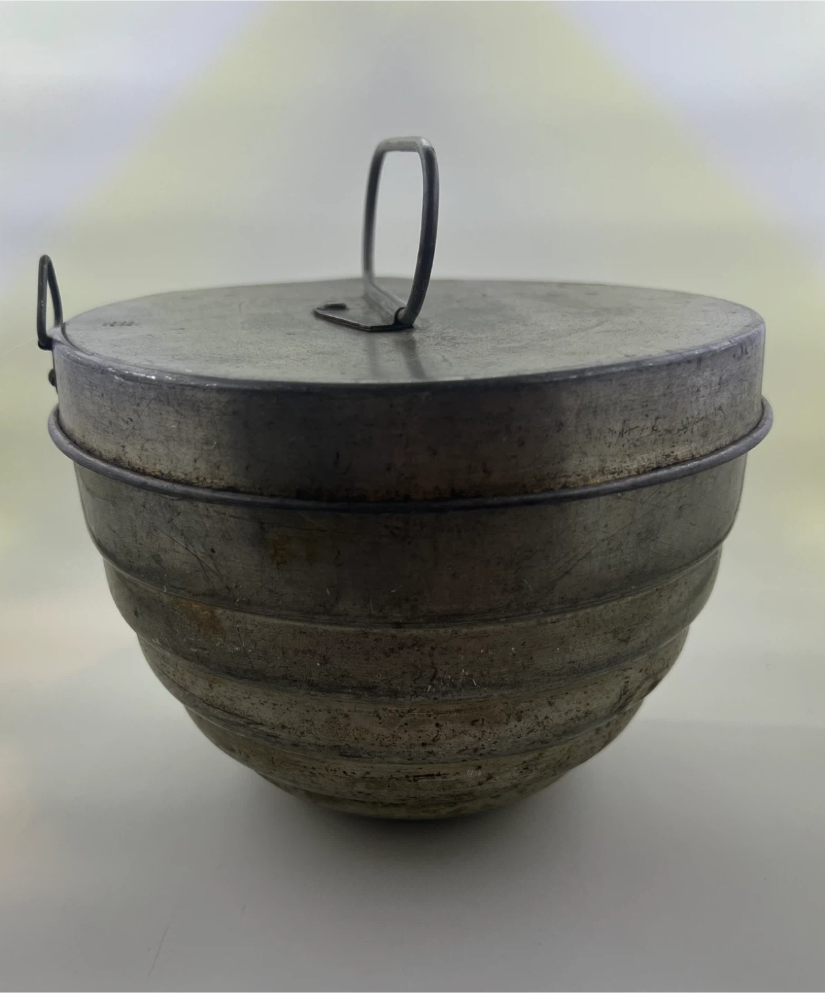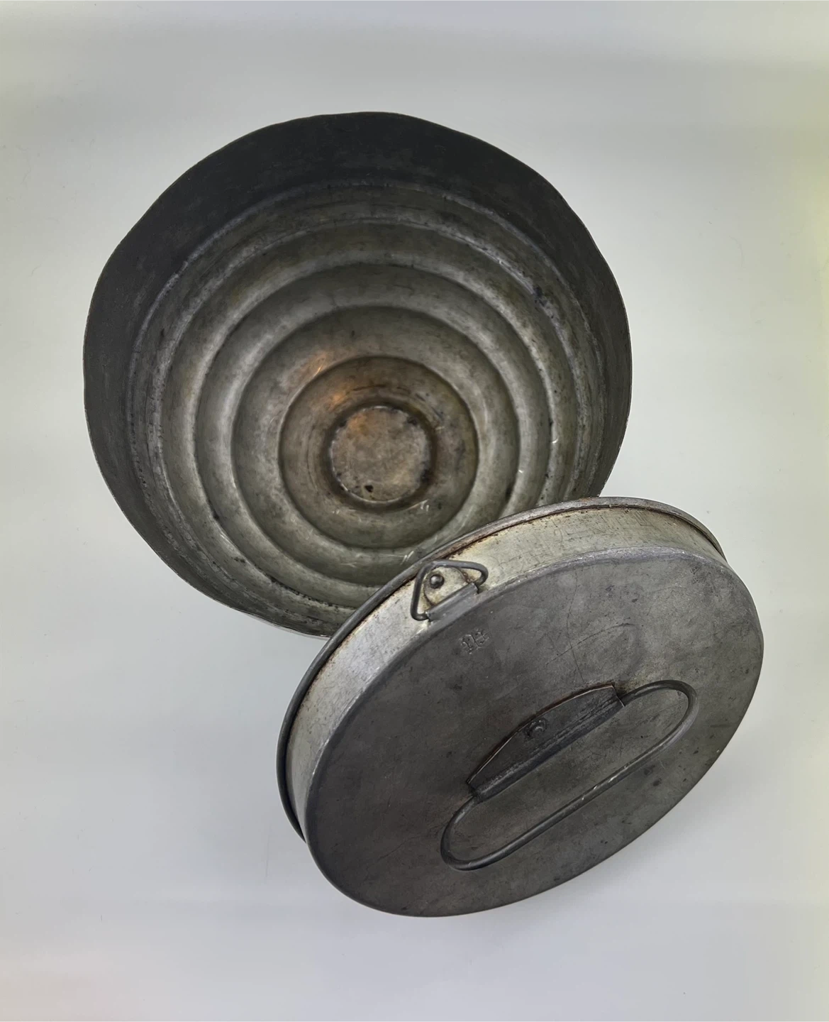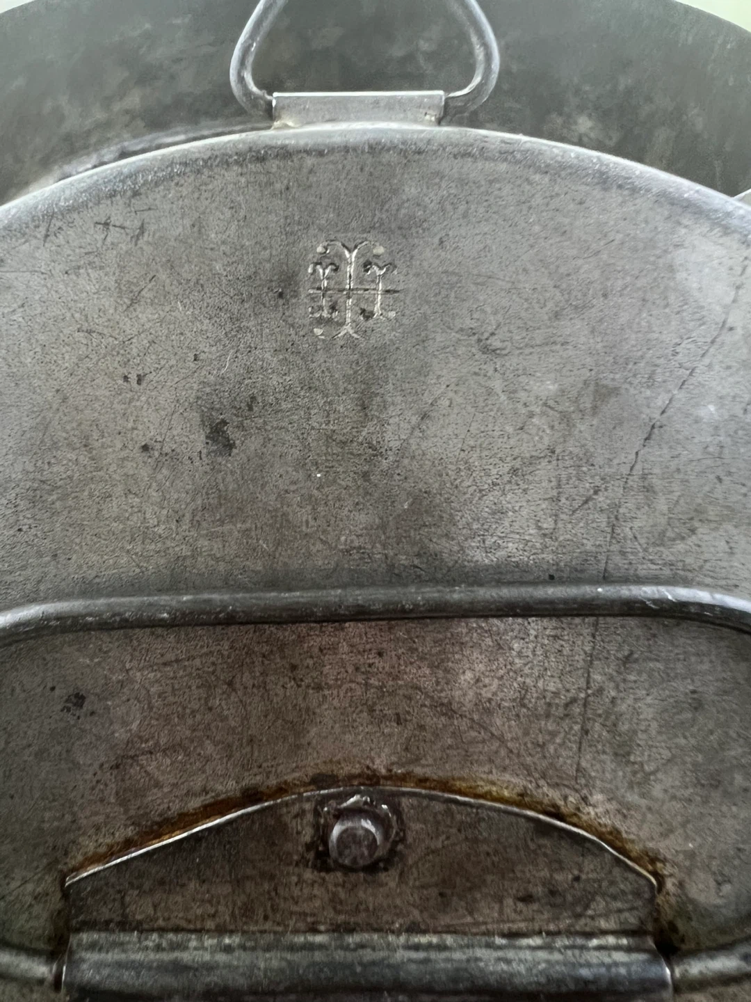 Stamped with an early 20th-century maker’s monogram, likely from a British or Canadian aluminum cookware manufacturer