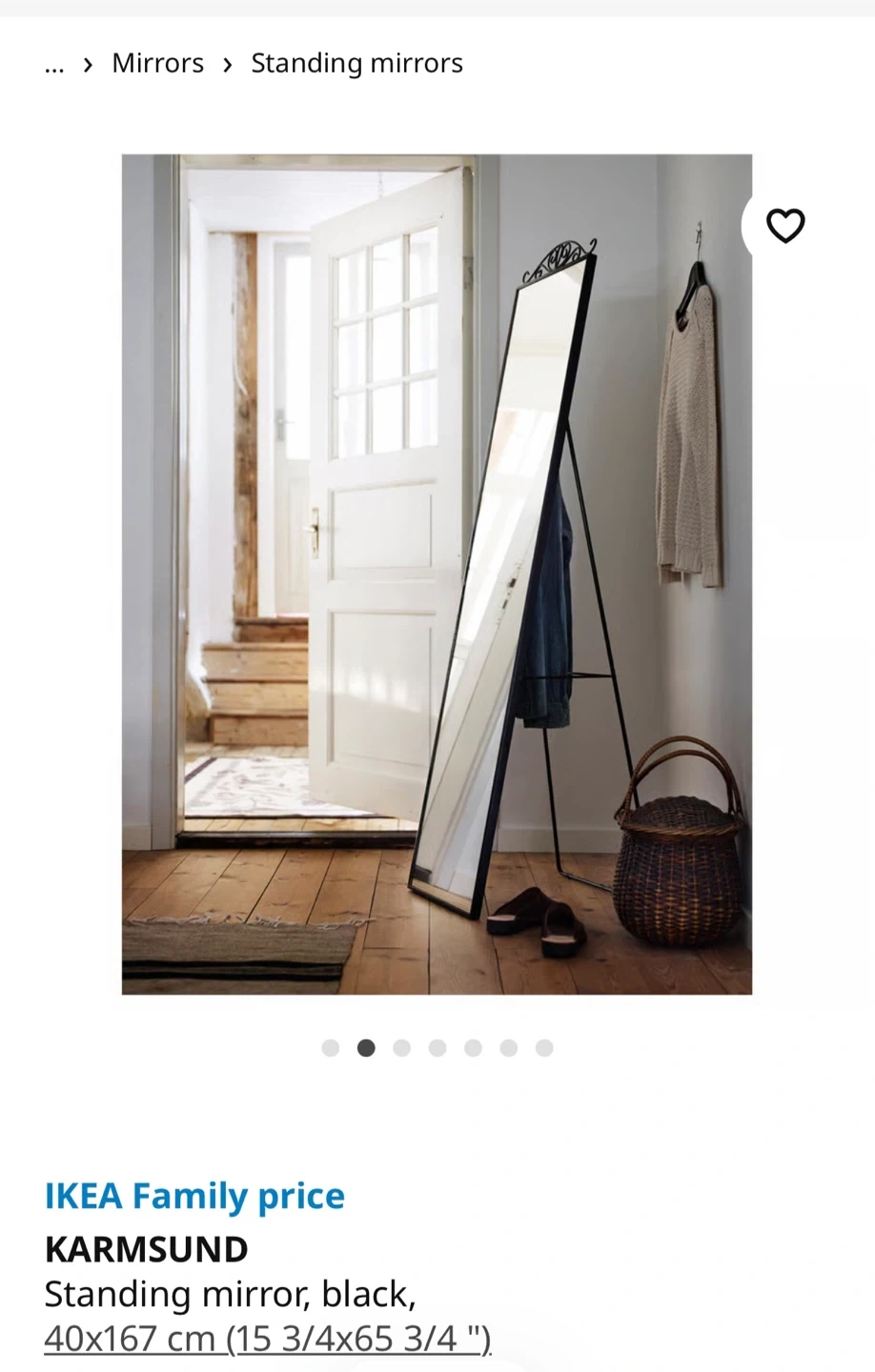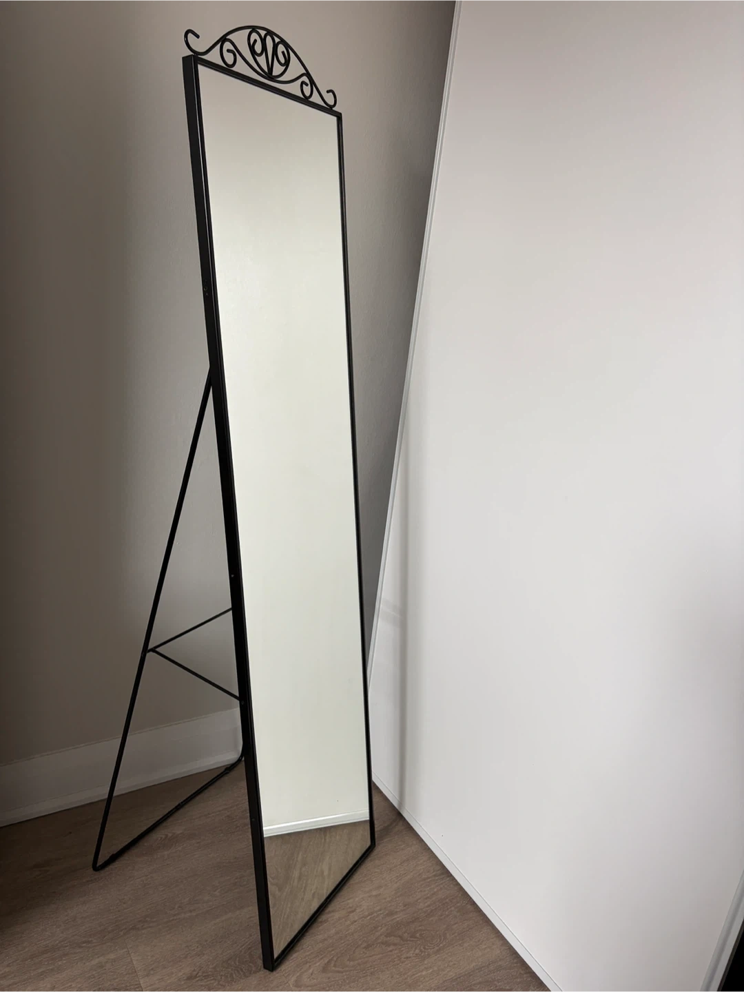Selling a Karmsund standing mirror from IKEA. It's in great shape and ready for a new home! The mirror is black and measures 40x167 cm (15 3/4x65 3/4 "). Great for any room! Only used for 6 months. Its like brand new.