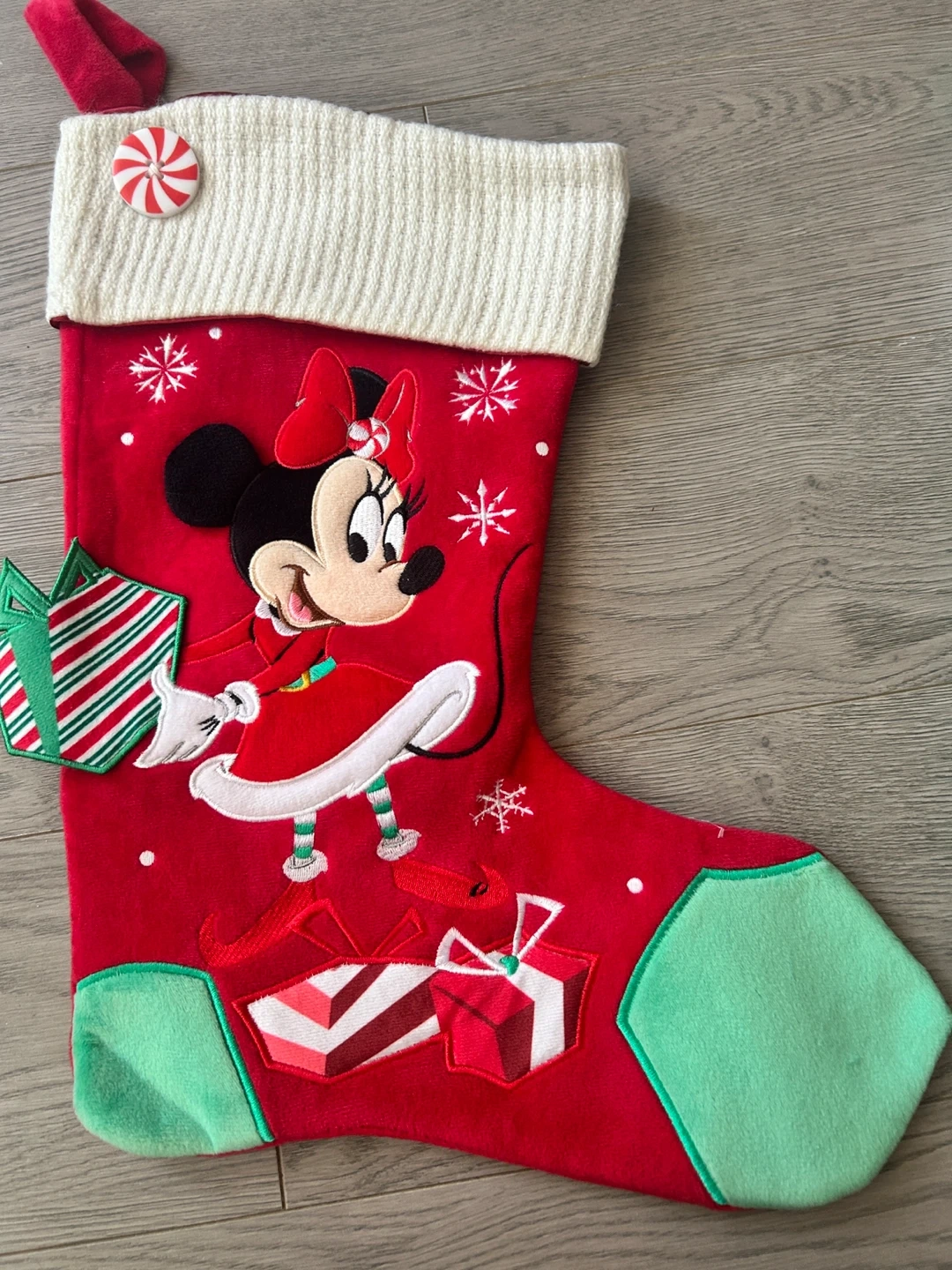 Adorable and Plush Disney Christmas tree skirt and stocking set! The tree skirt features Mickey, Minnie, Donald, and Goofy on a train, while the stocking has Mickey and Minnie designs. Perfect for adding a touch of Disney magic to your Christmas decor