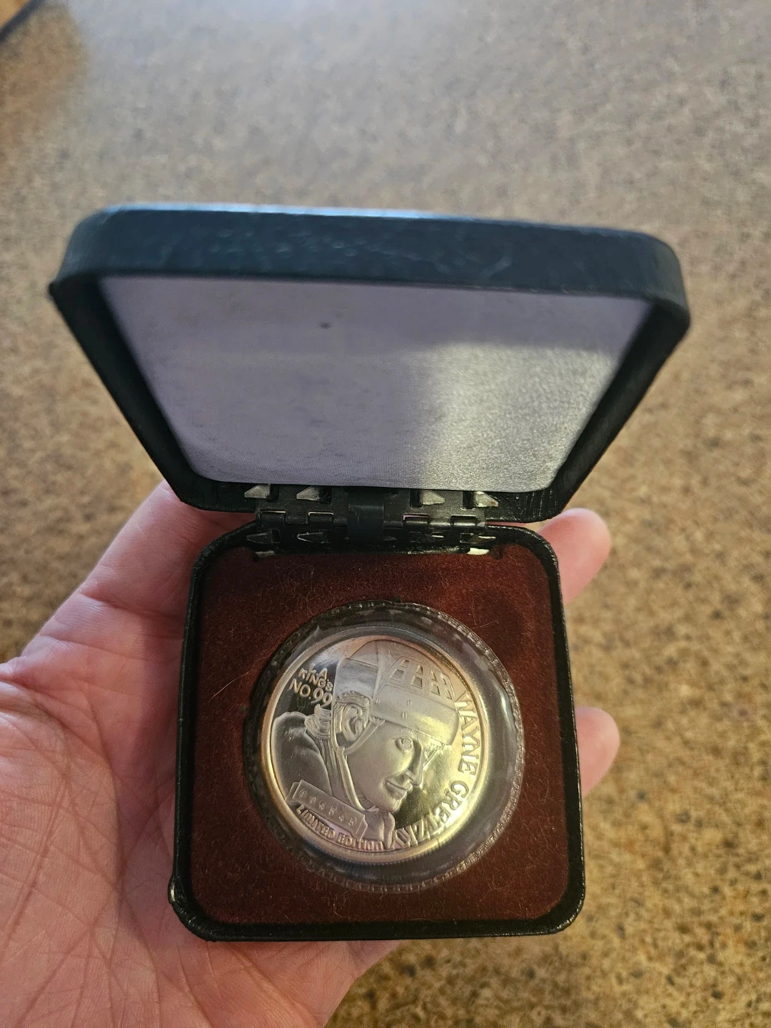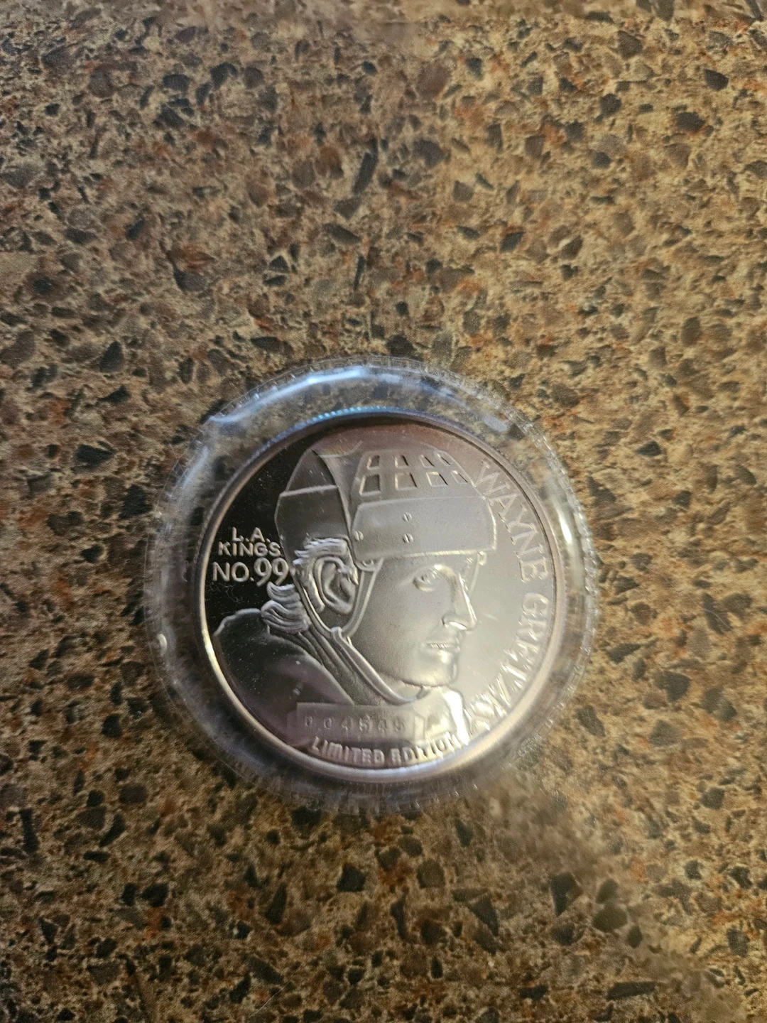 Selling a limited edition Wayne Gretzky fine silver coin. It is One Troy Oz .999 Fine Silver and commemorates Gretzky as the NHL's all-time leading scorer with 1851 points. Comes with display box
