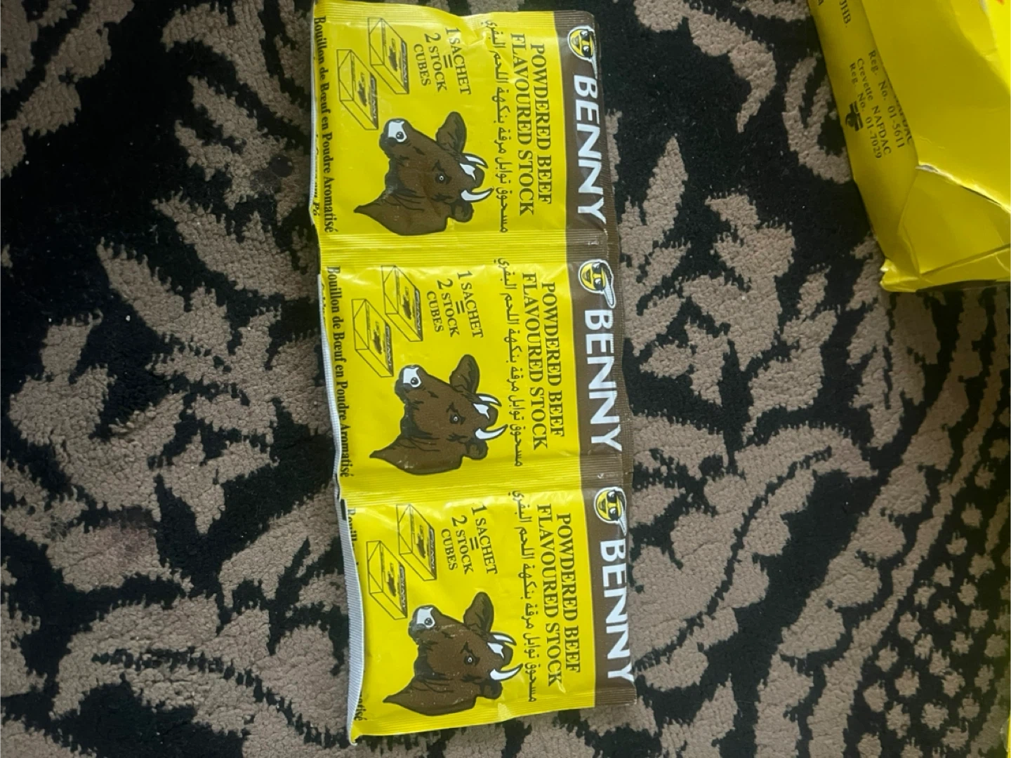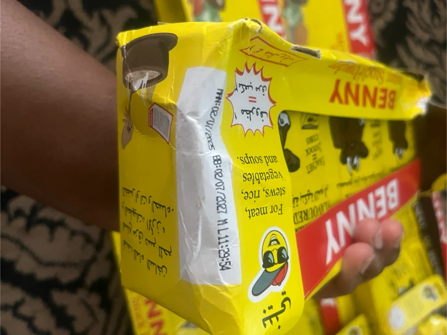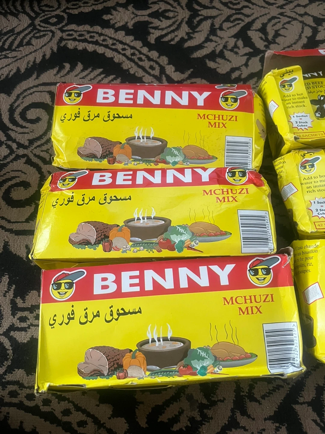 Benny Instant Stock Powder for meat, stews, rice, vegetables and soups. Each box contains 42 sachets. Expiry Date: 2027 July 02. For one packet it’s $1.00, but if you want the full box, it’ll be $40.00