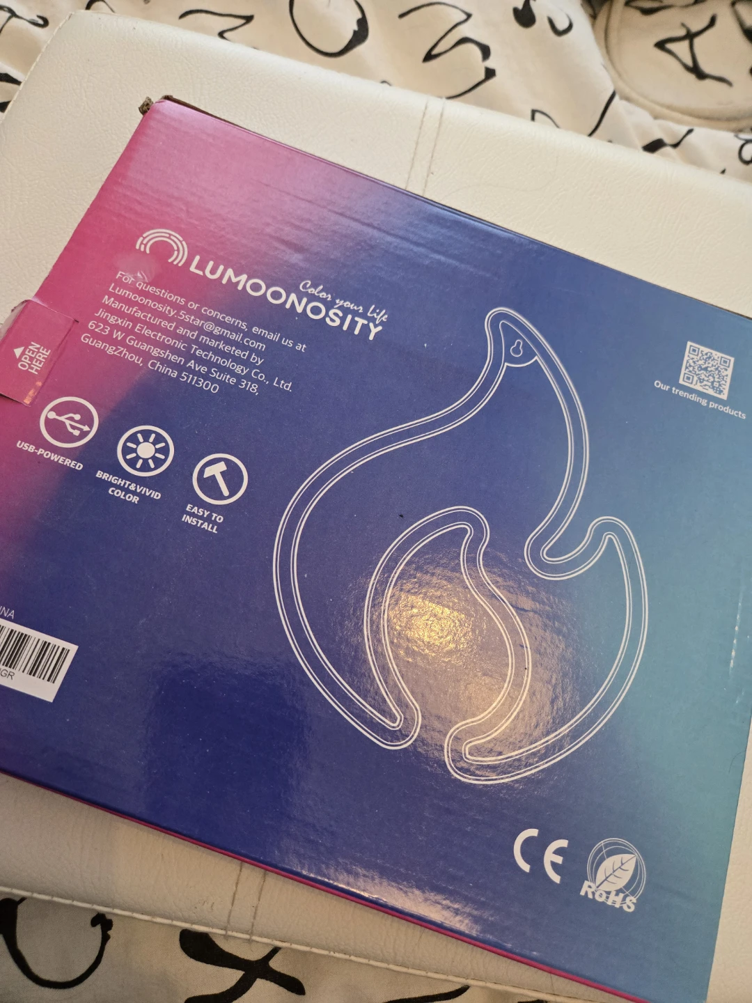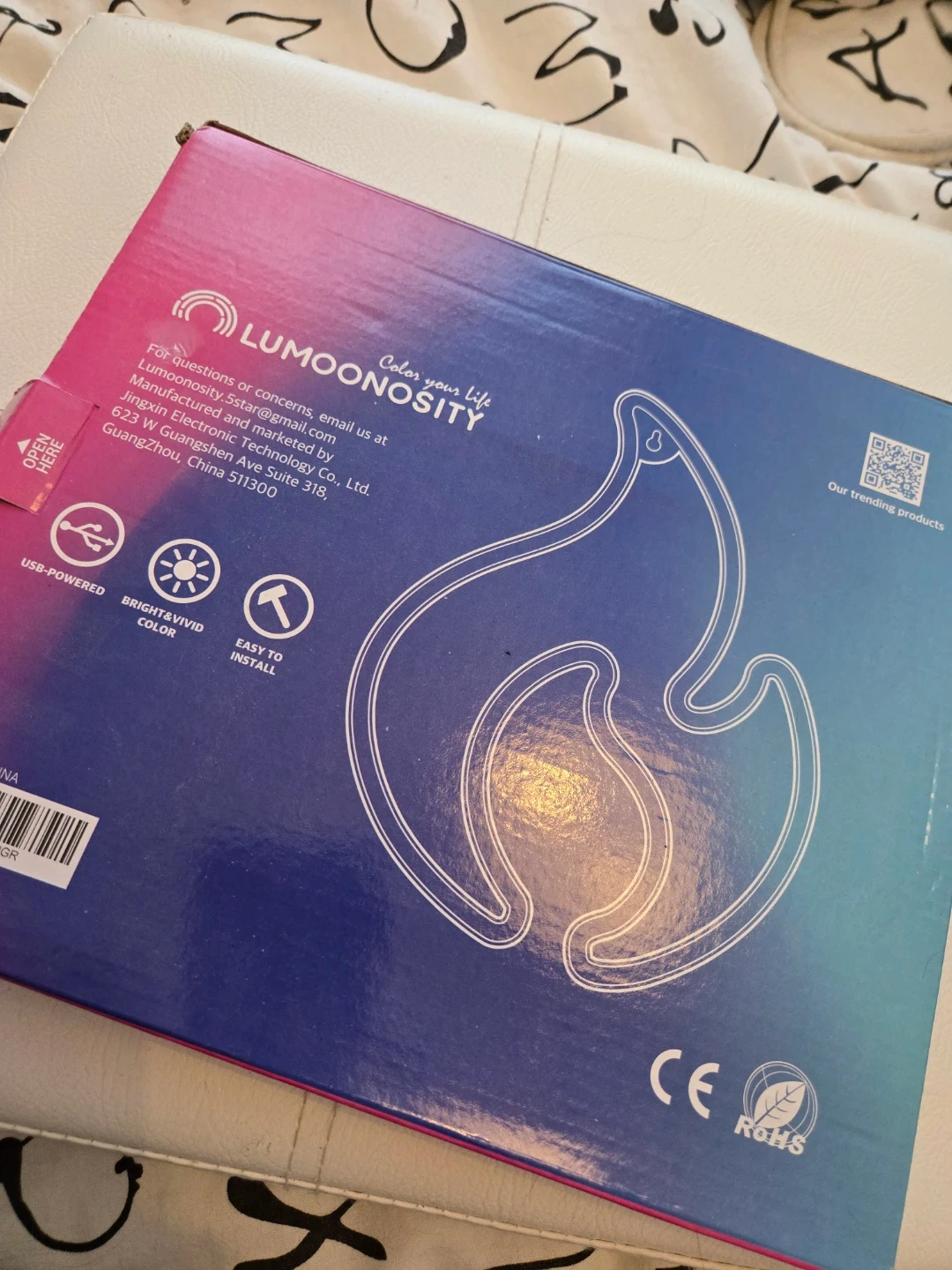 Flame shape. It's USB powered and has a bright, vivid colour. It's also easy to install. Perfect for adding a unique touch to any room!