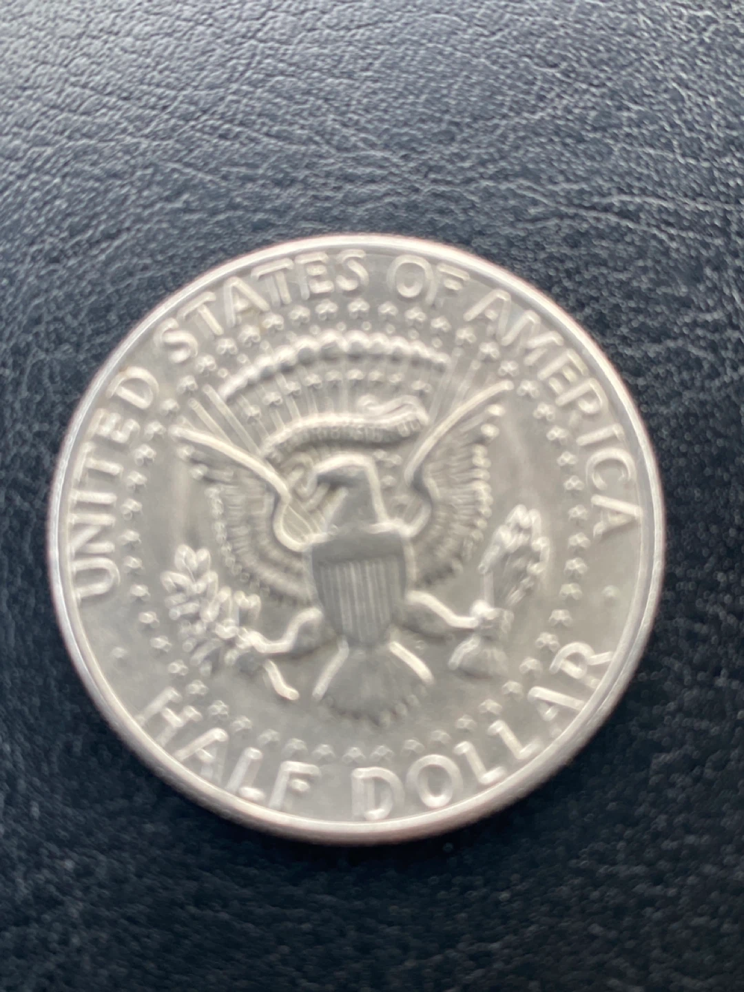 Selling a 1974 Kennedy Half Dollar coin. It features the profile of John F. Kennedy and the words 'In God We Trust'. A great piece for any coin collector!