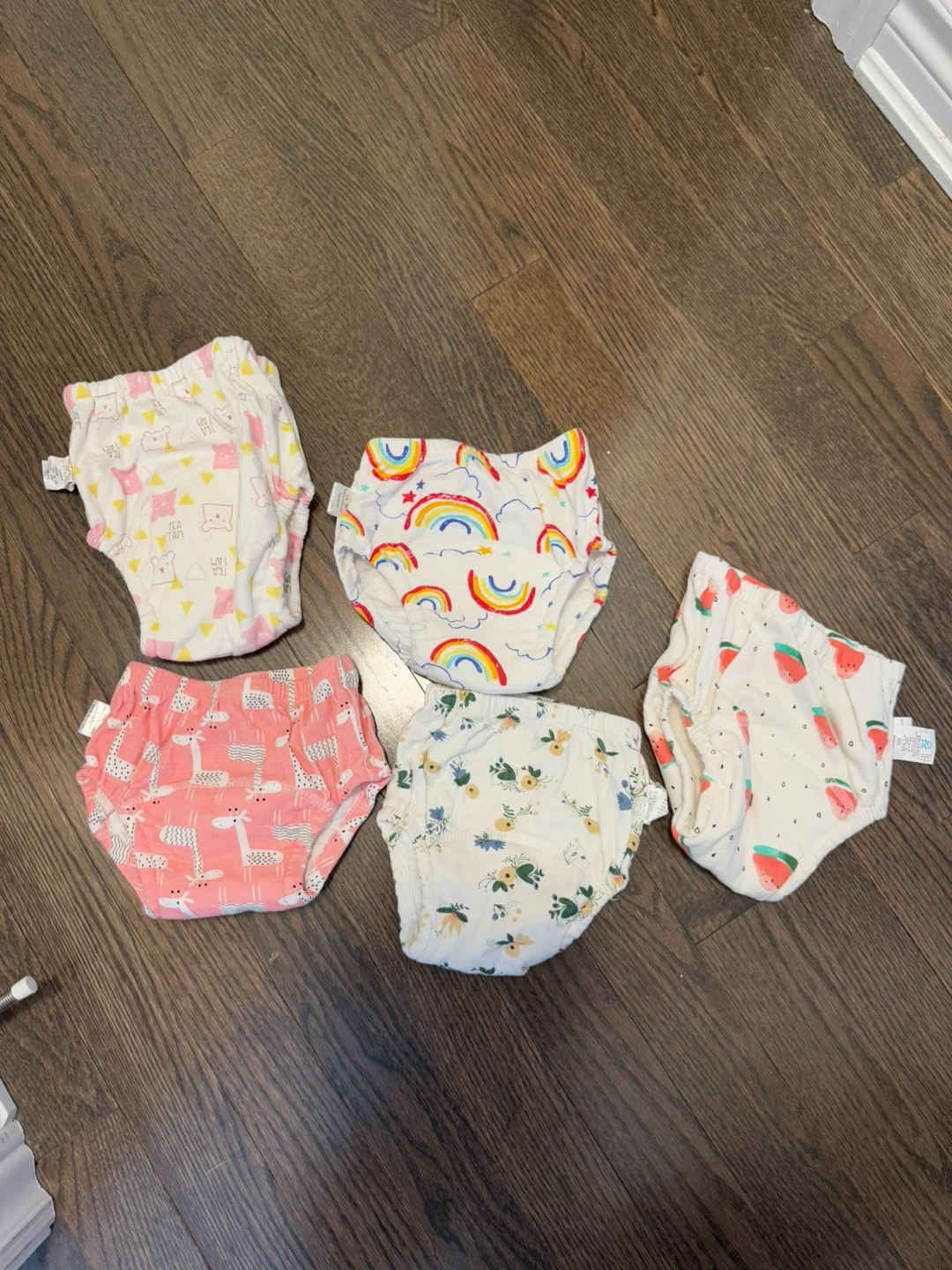 Here's a set of five adorable Delibaby training pants in size 100! They're made of 100% cotton (excluding the absorbent layer). Perfect for your little one's potty training journey