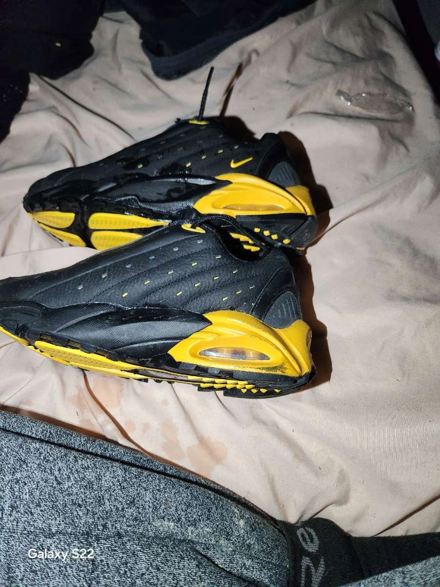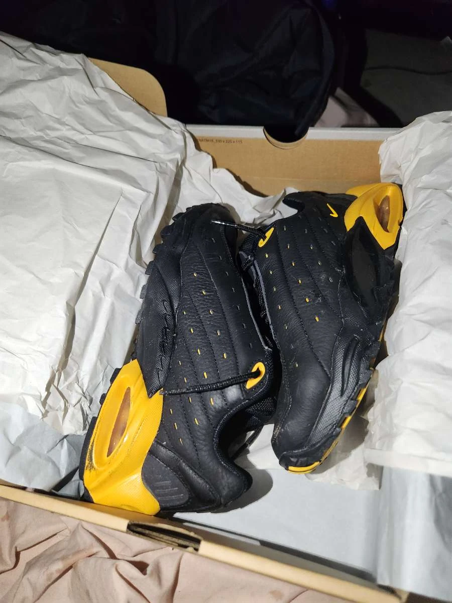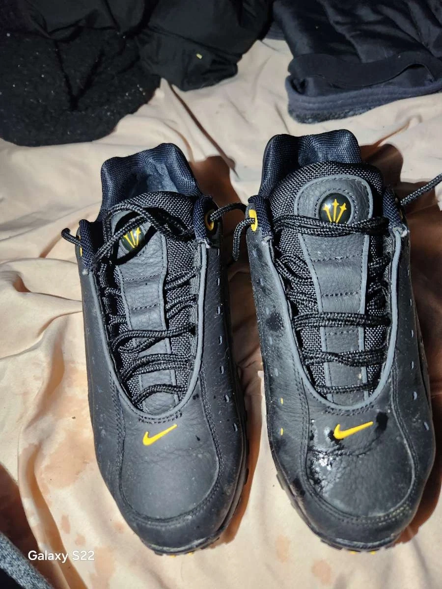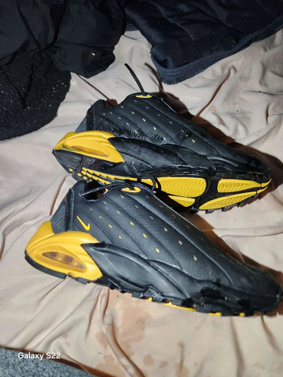 Selling a pair of Nike Hot Step Air Terra NOCTA sneakers in black and university gold! They're a women's size 7.5 and come with the original box