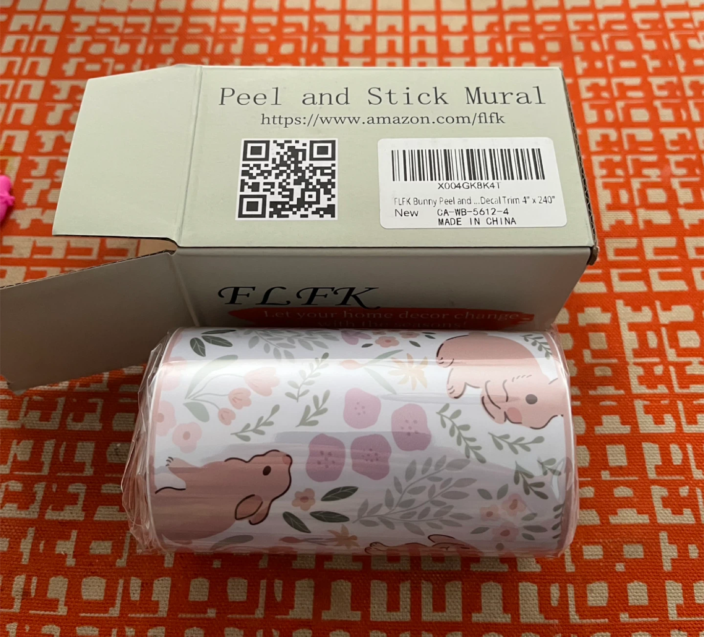 Selling a brand new FLFK Bunny Peel and Stick Mural. It measures 4 inches by 240 inches and comes in its original box. It's perfect for adding a touch of spring to any room!