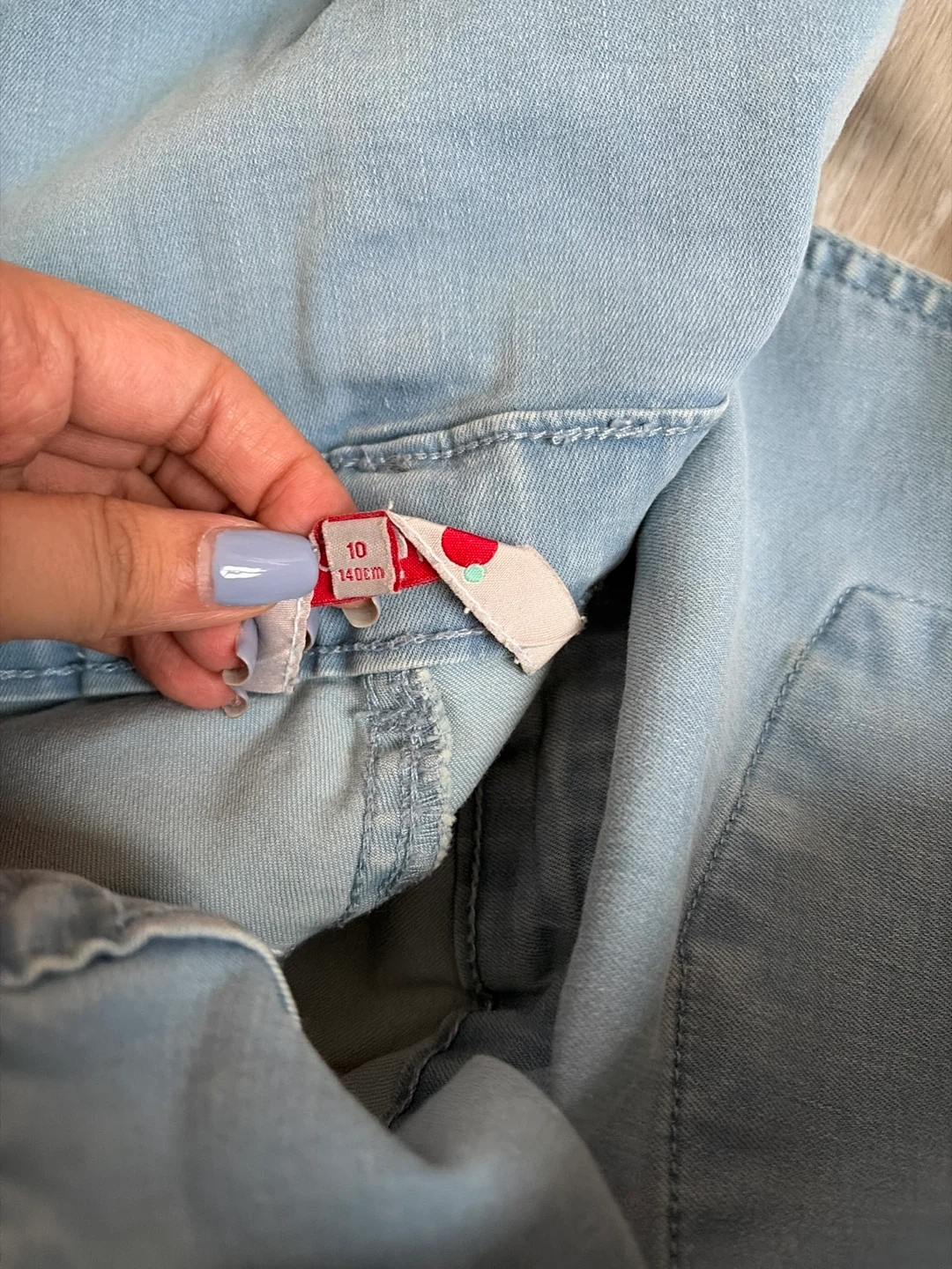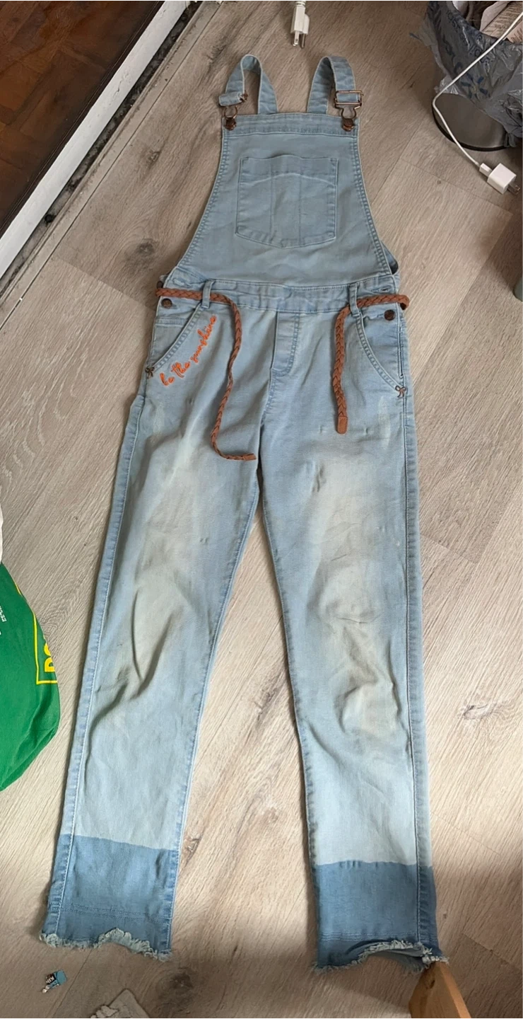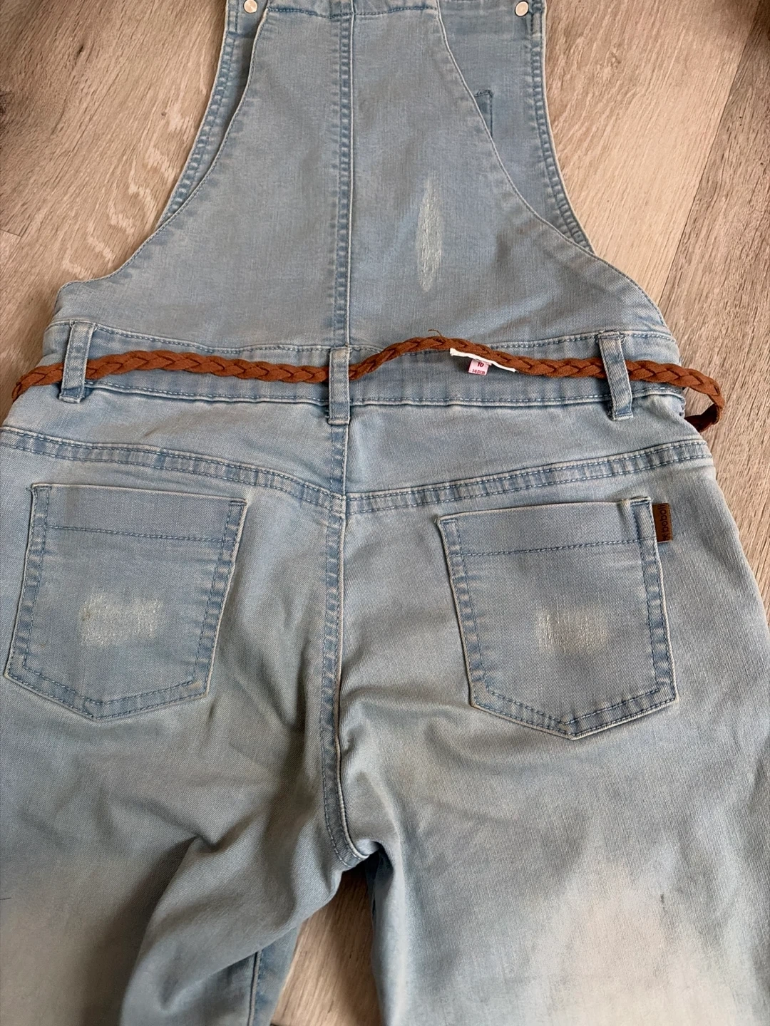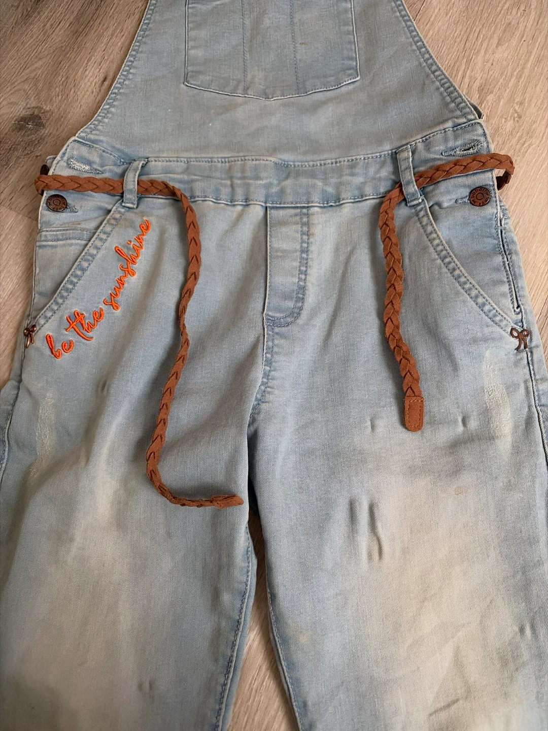 Cute denim overalls for girls from La Redoute! They come in a light blue denim wash and feature a braided belt. The size is 10 (140cm). They're in good condition, ready for a new adventure!