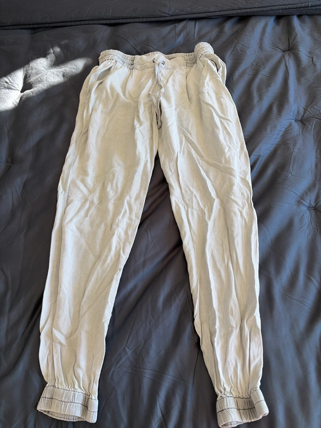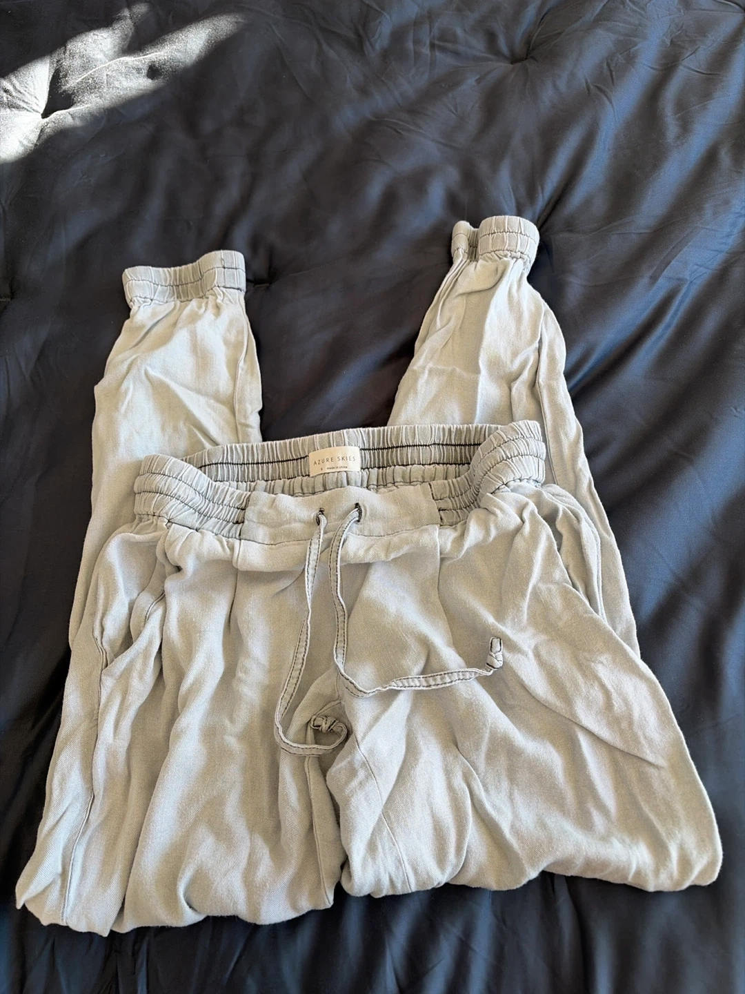 Selling a pair of Aritzia Azure Skies pants in size small! They're a light grey colour and made of a comfortable material. Perfect for lounging or casual wear.