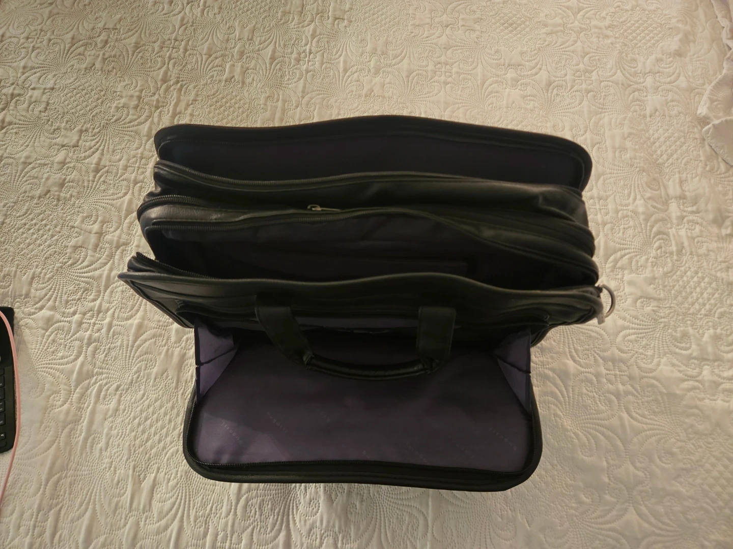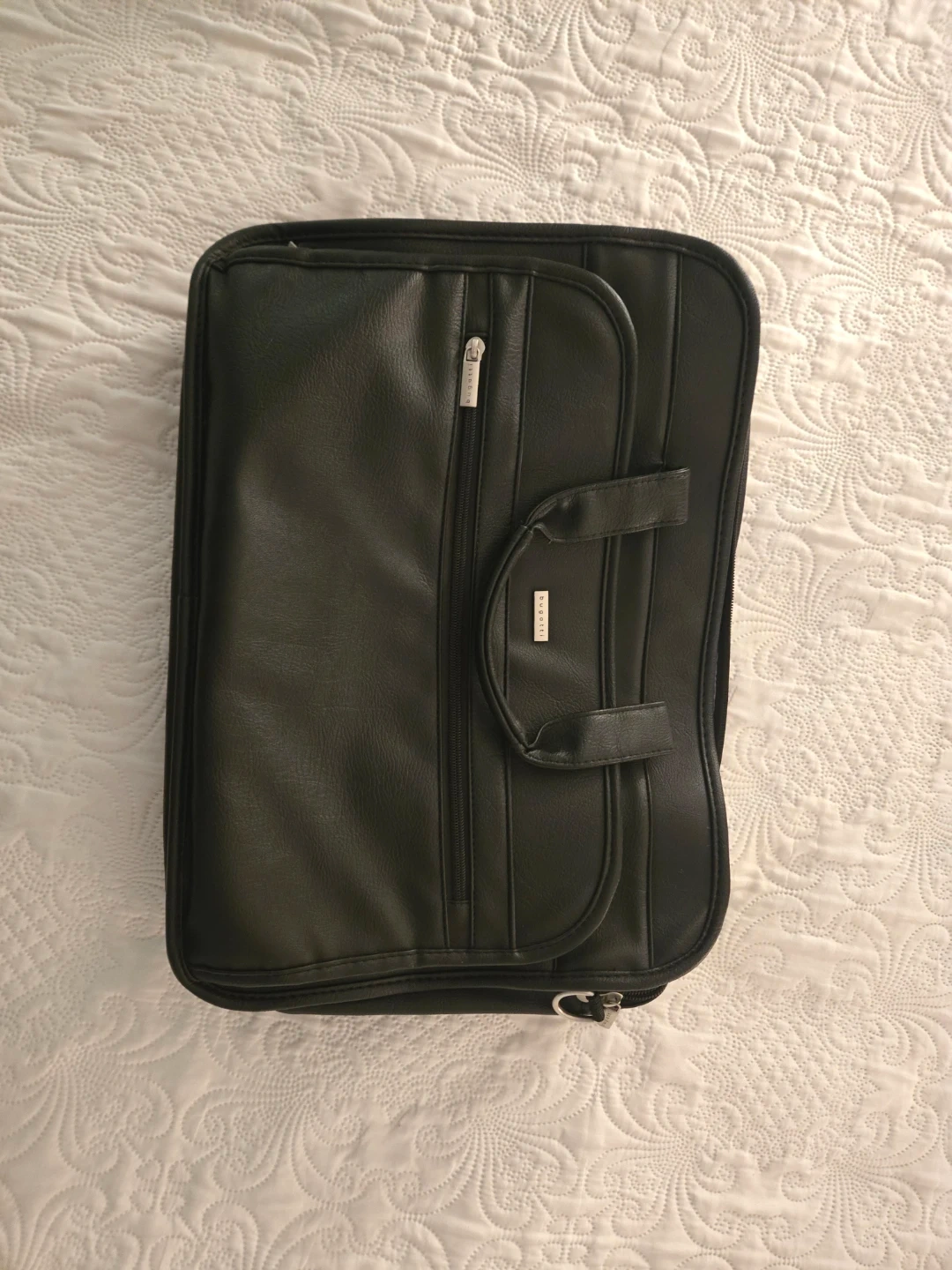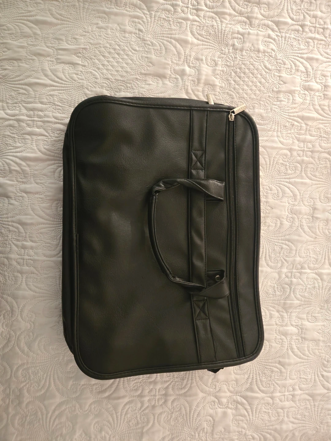 Selling a black Bugatti leather laptop bag. It's in great condition and perfect for carrying your laptop and other essentials. The bag features a sleek design with multiple compartments to keep your belongings organized