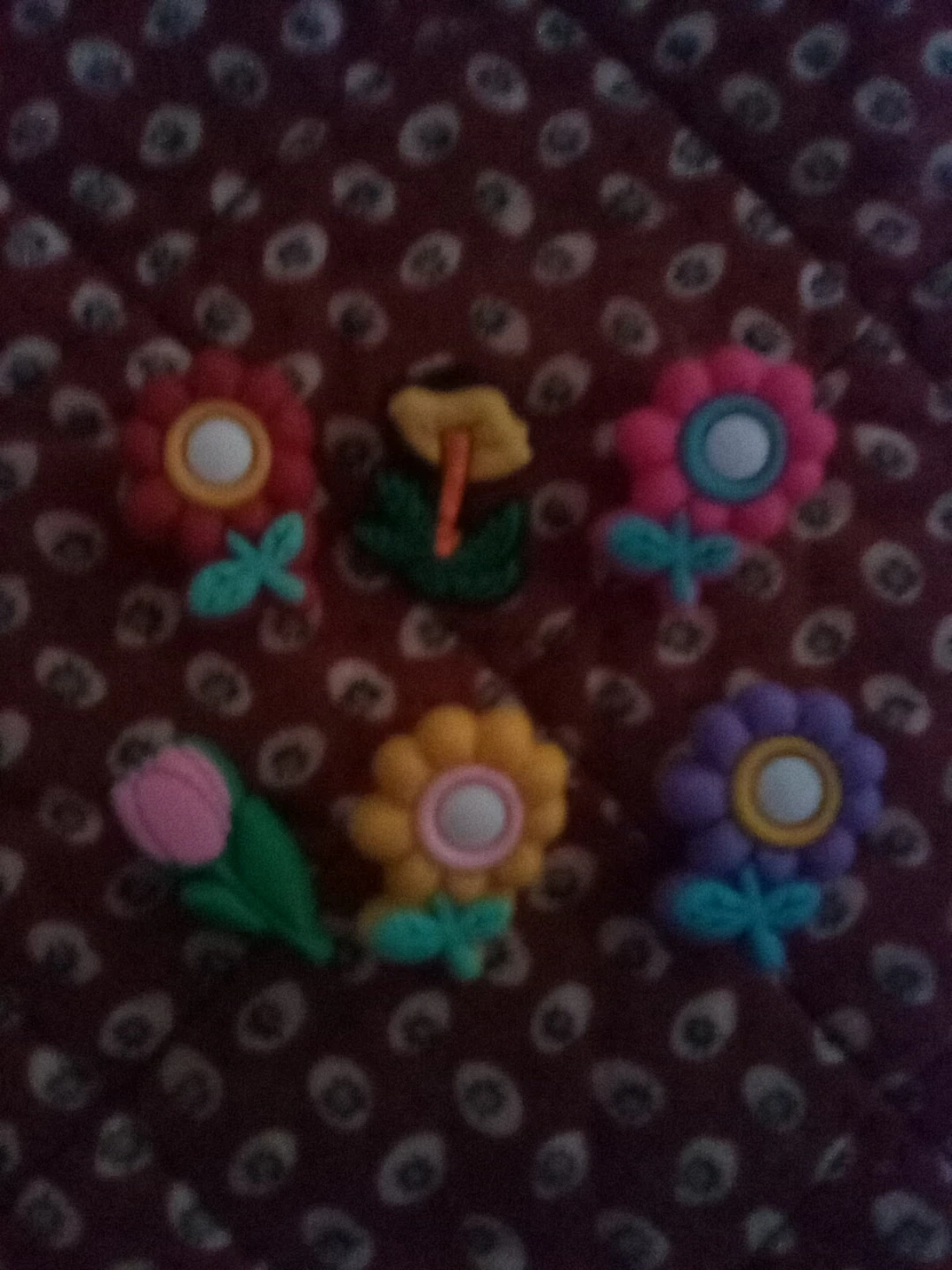 Selling a set of Crocs Jibbitz charms shaped like colourful flowers! They're in great shape and ready to add some fun to your Crocs.