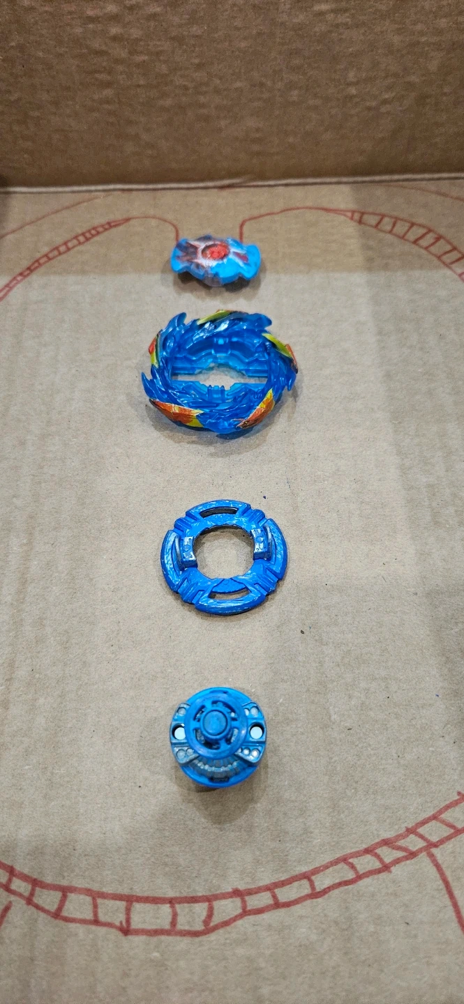 Selling a blue Beyblade Burst surge beyblade. It looks like it's in great condition and ready for some battles! It's a fun toy for kids and collectors alike