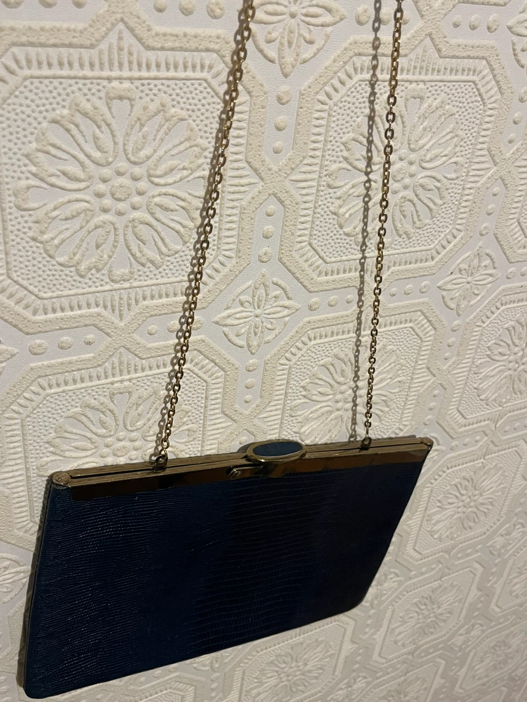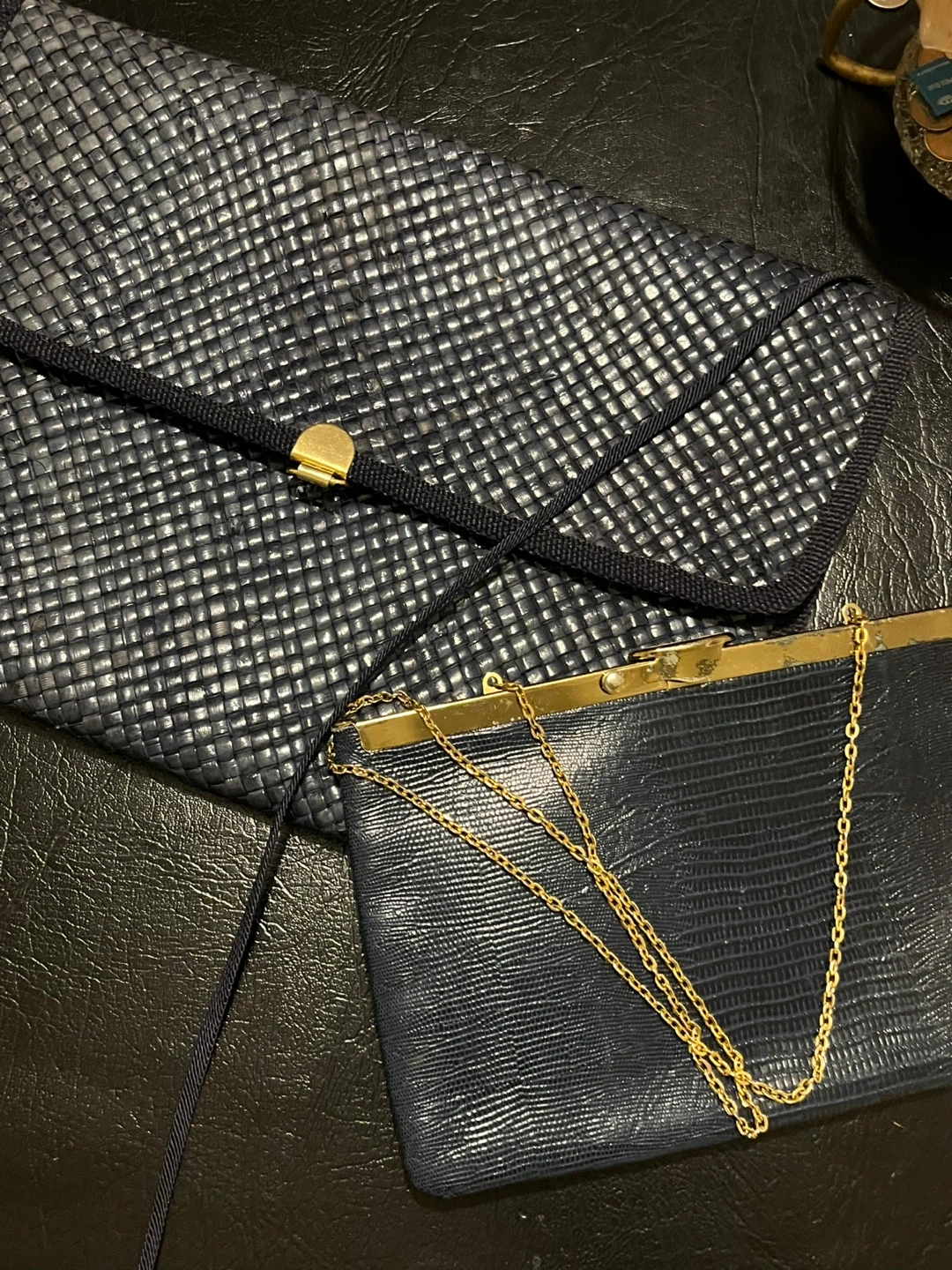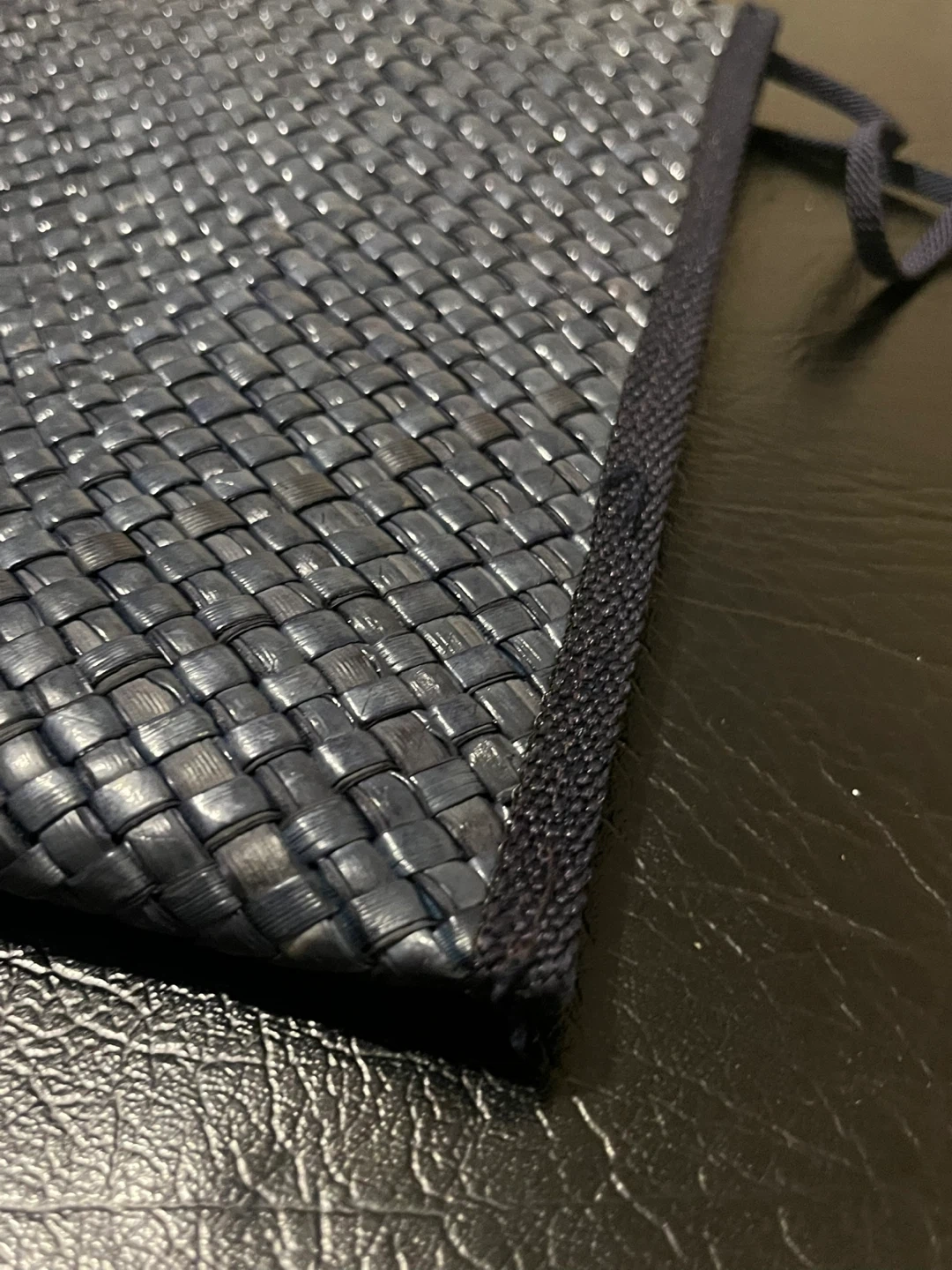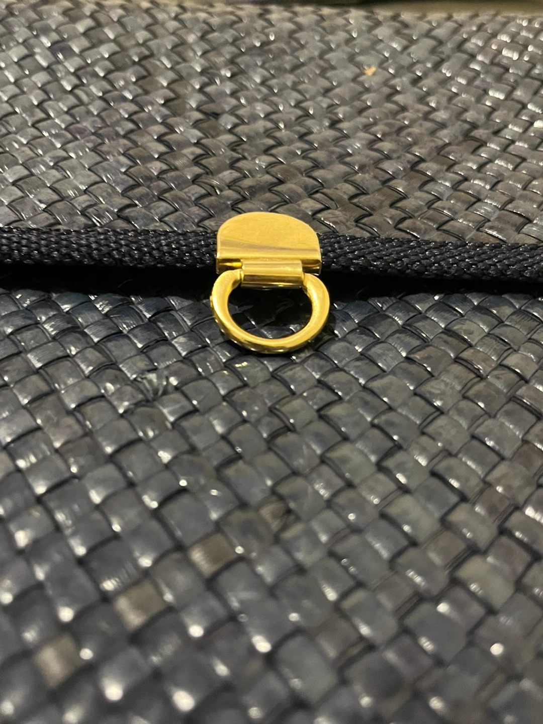 Selling a navy woven clutch purse. It's in great condition and ready for a new owner! The purse has a unique woven texture and a classic design, perfect for evenings out or special occasions