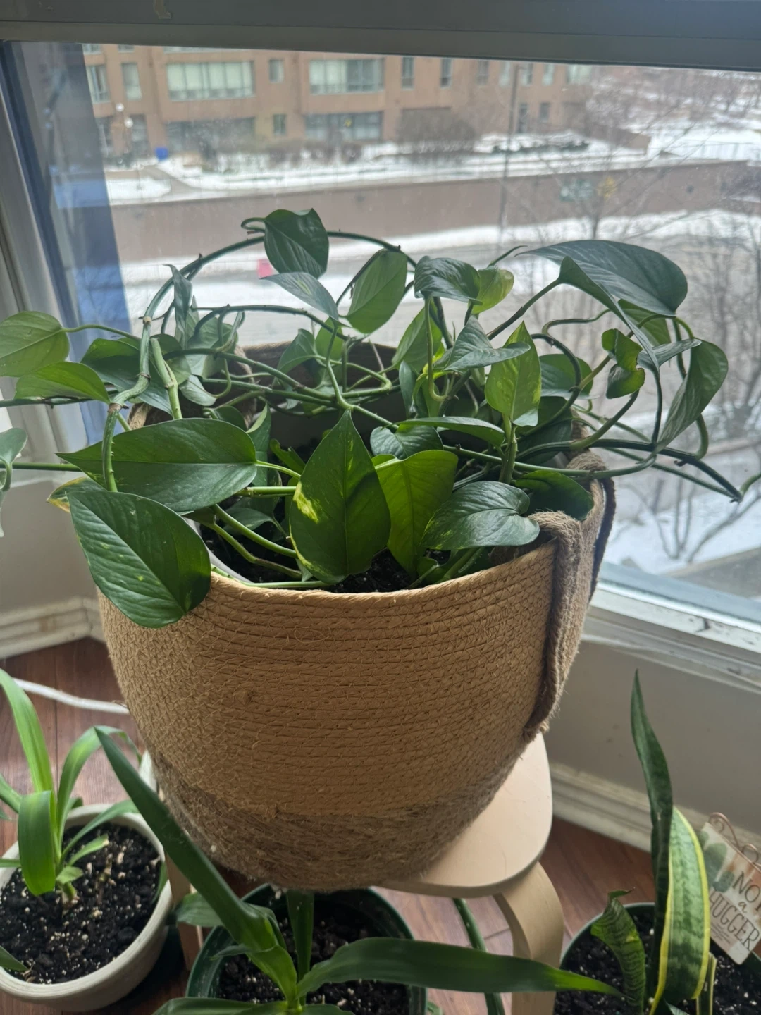 I'm selling a healthy golden pothos plant in a woven pot! It's a beautiful and easy-to-care-for houseplant that will add a touch of green to any space. Indoor and great all season plant grows fast.