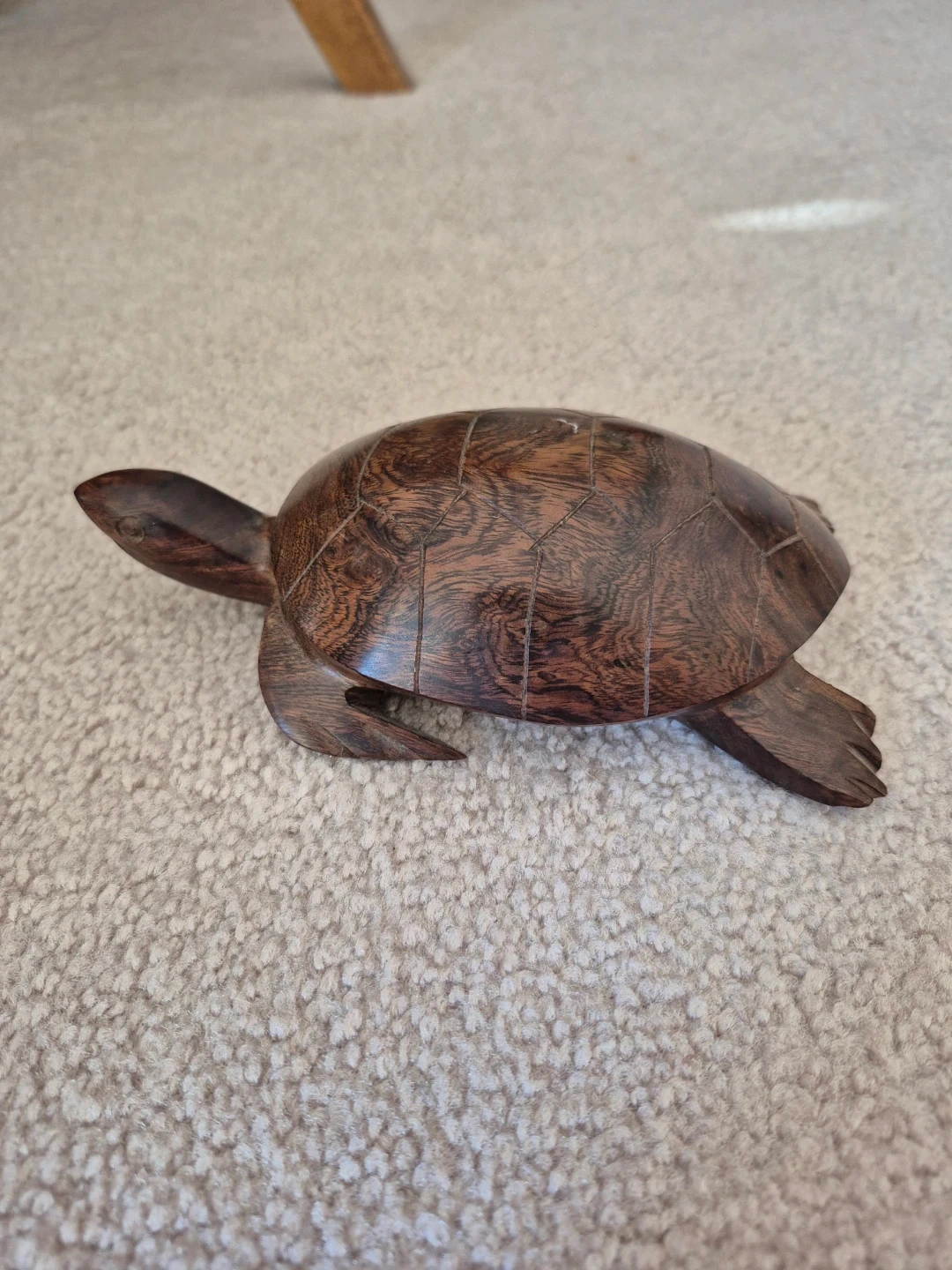 A lovely wooden turtle figurine, perfect for adding a touch of nature to your home decor! It has a beautiful wood grain pattern and a smooth finish