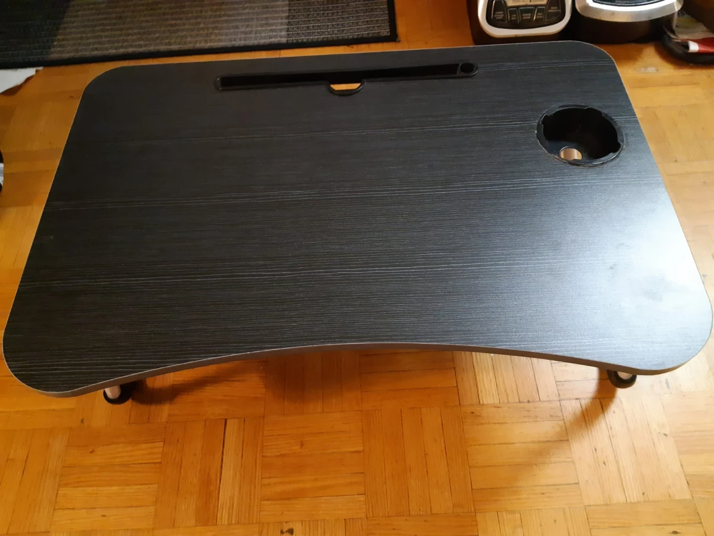 Selling a portable laptop bed desk table! It's great for working or relaxing in bed or on the couch. It features a cup holder and a slot for your tablet or phone. The legs fold for easy storage and portability