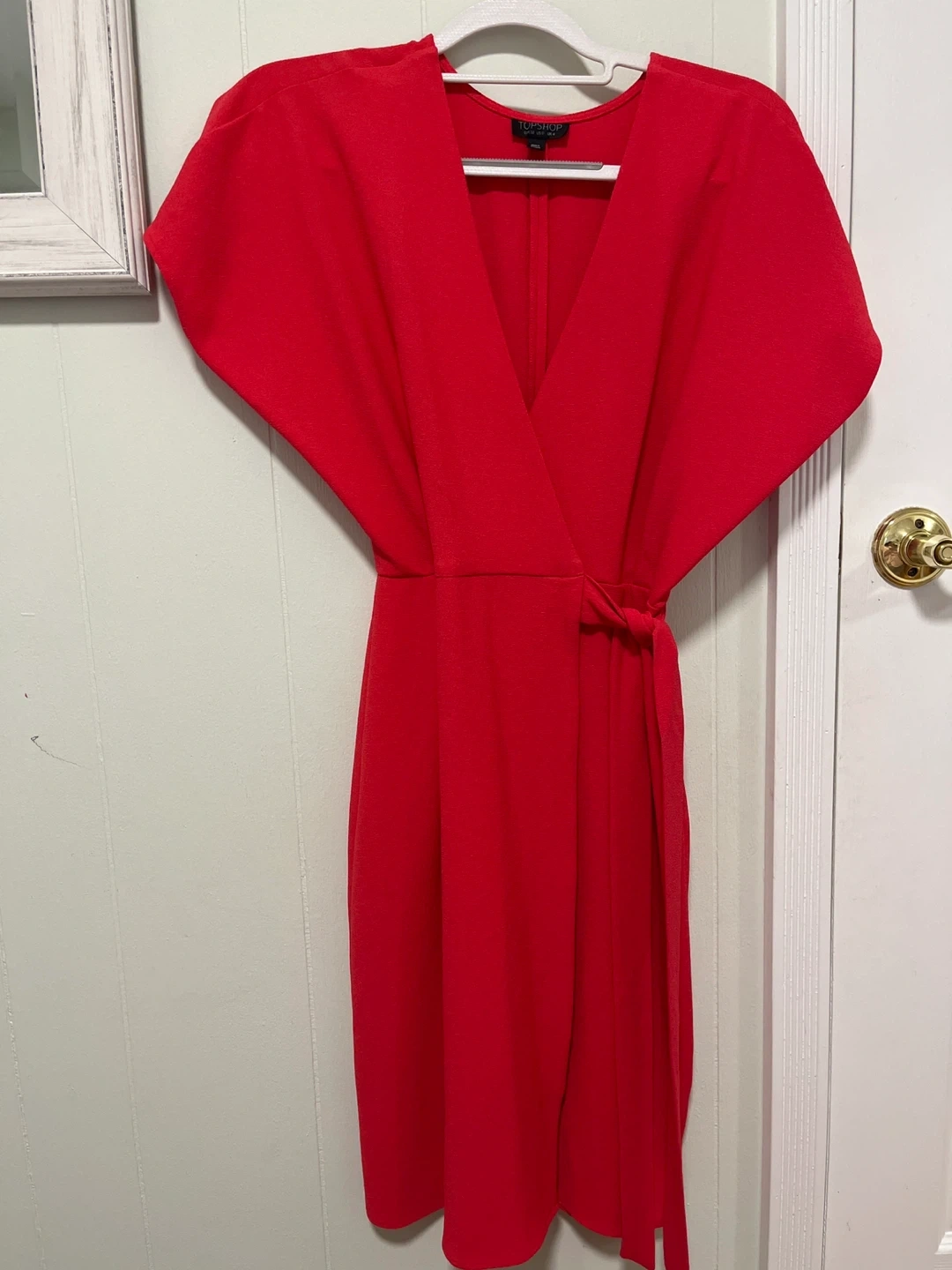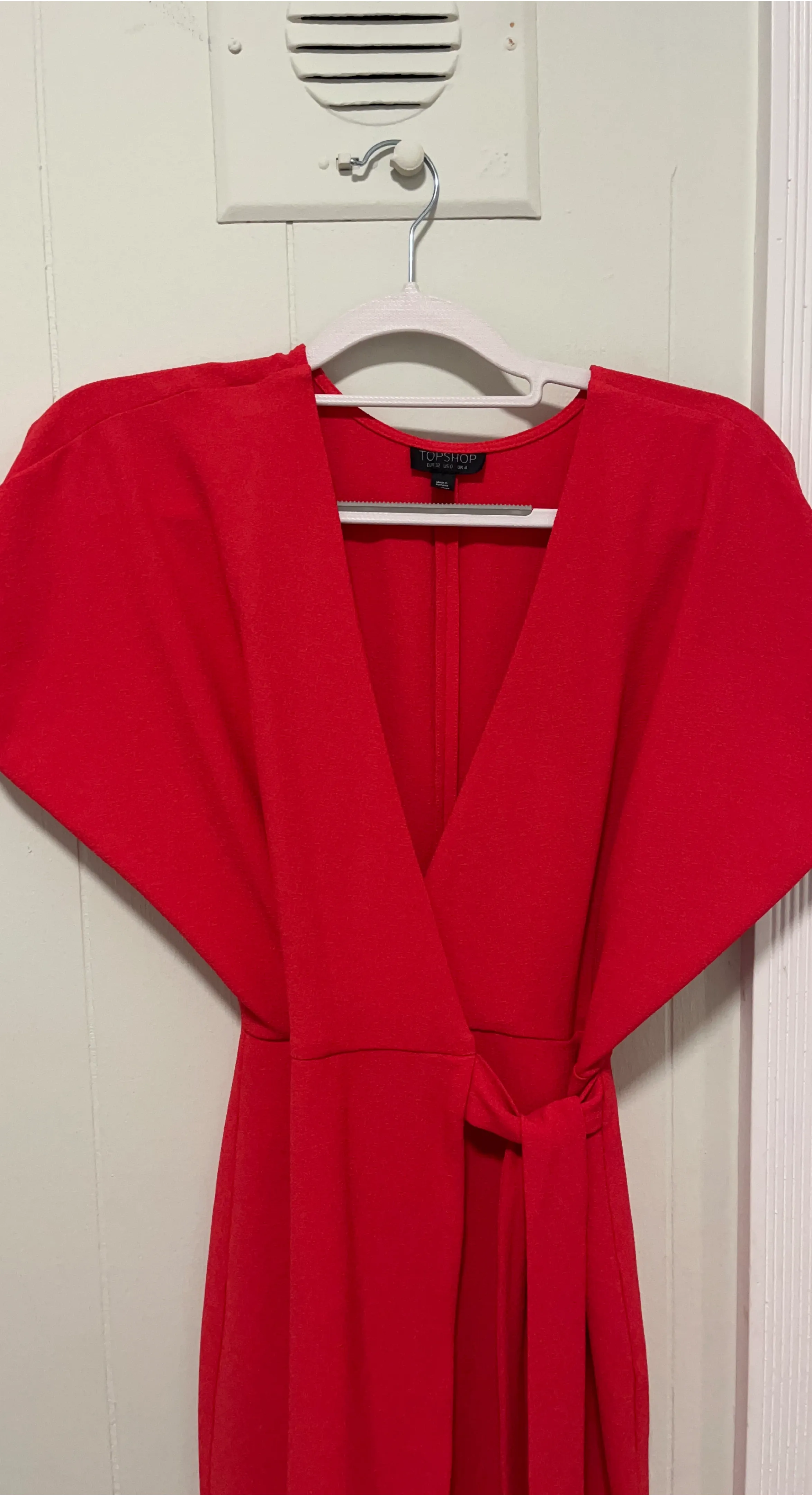 Selling a vibrant red dress from Topshop! It's a size US 0. UK size 4. Perfect for a night out or a special occasion. The dress has a flattering silhouette and is in great condition