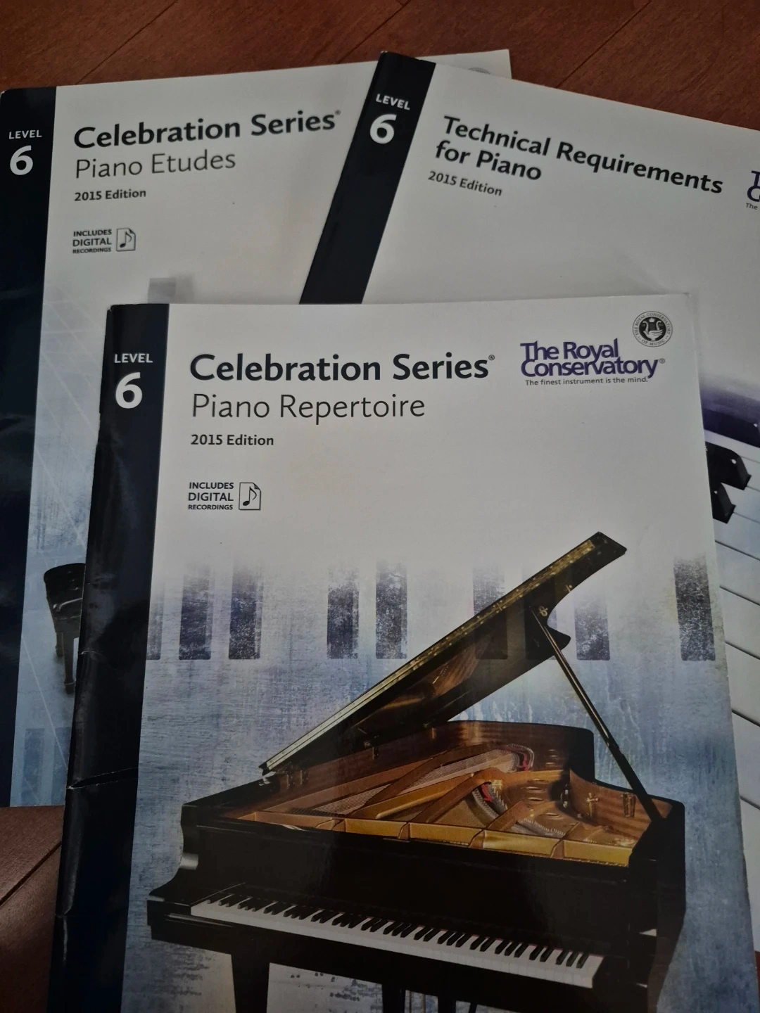 Selling a set of Celebration Series piano books, Level 6! Includes Piano Repertoire, Piano Etudes, and Technical Requirements for Piano. All are the 2015 Edition.