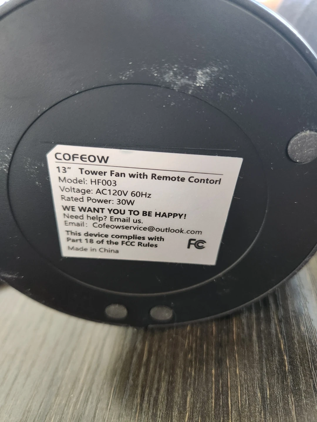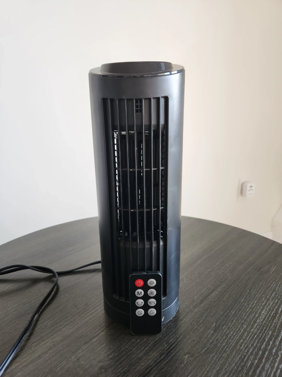 Selling a COFEOW tower fan in black! It comes with a remote control for easy operation. The fan is rated at 30W and is in great condition. It's lightweight and portable, perfect for any room