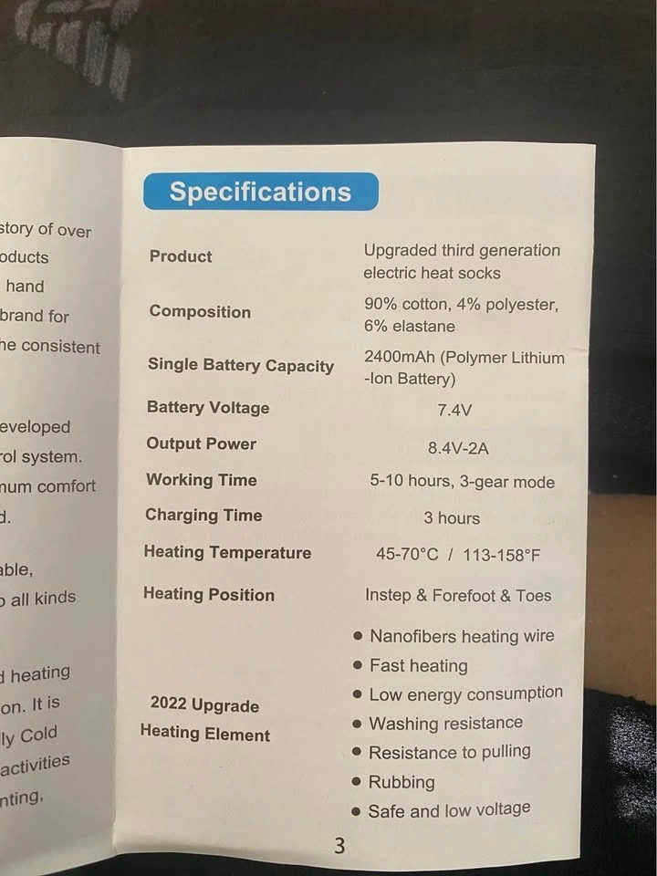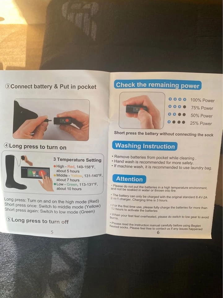 Electric Heated Skiing Hunting Camping Fishing Cycling Socks, washable