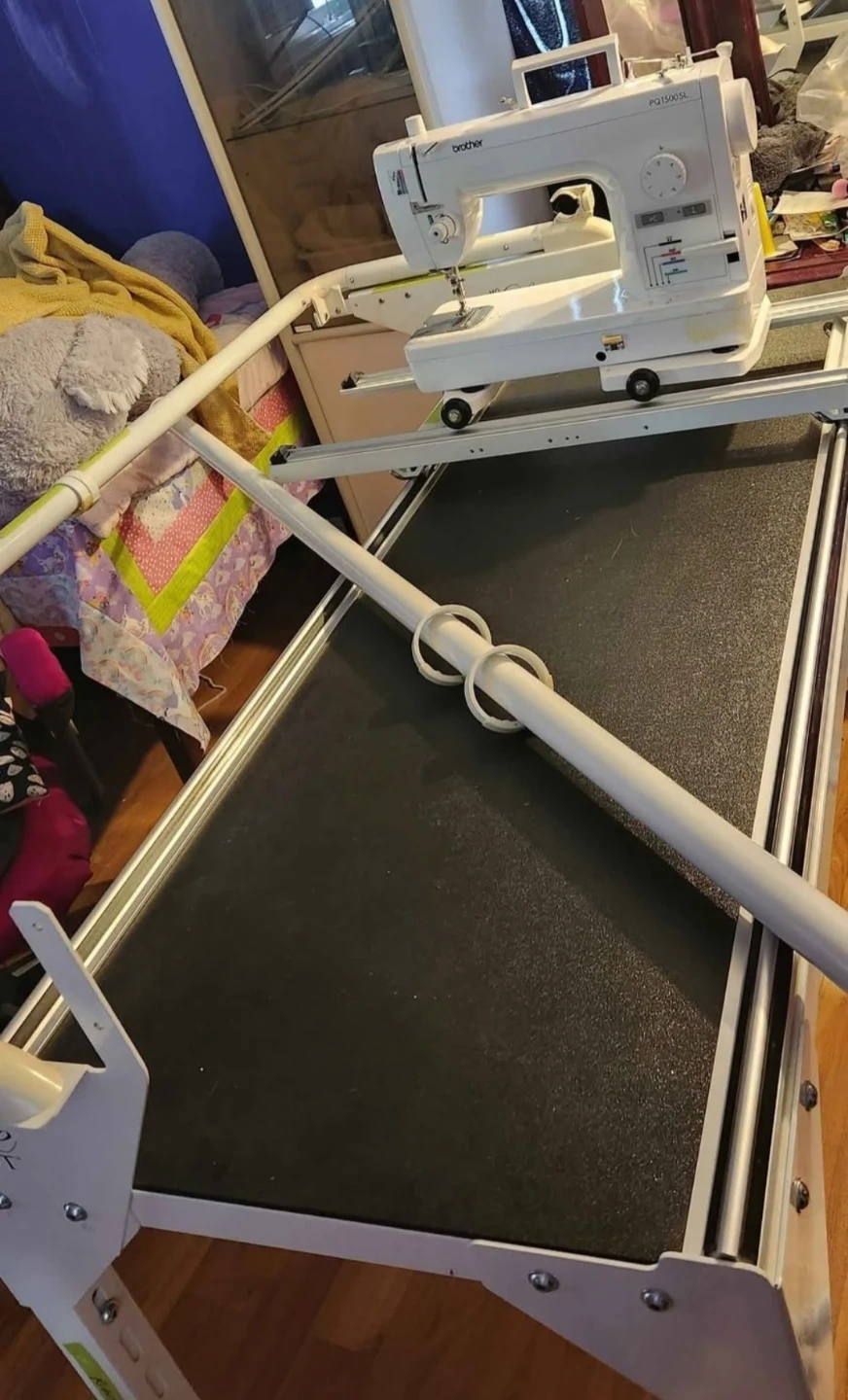 Selling an HQ Little Foot quilting frame paired with a Brother PQ1500SL sewing machine. This setup is perfect for quilters looking to expand their capabilities and work on larger projects. The frame provides a stable and spacious area for quilting, while the Brother sewing machine is known for its reliability and precision. Great for creating beautiful quilts with ease!