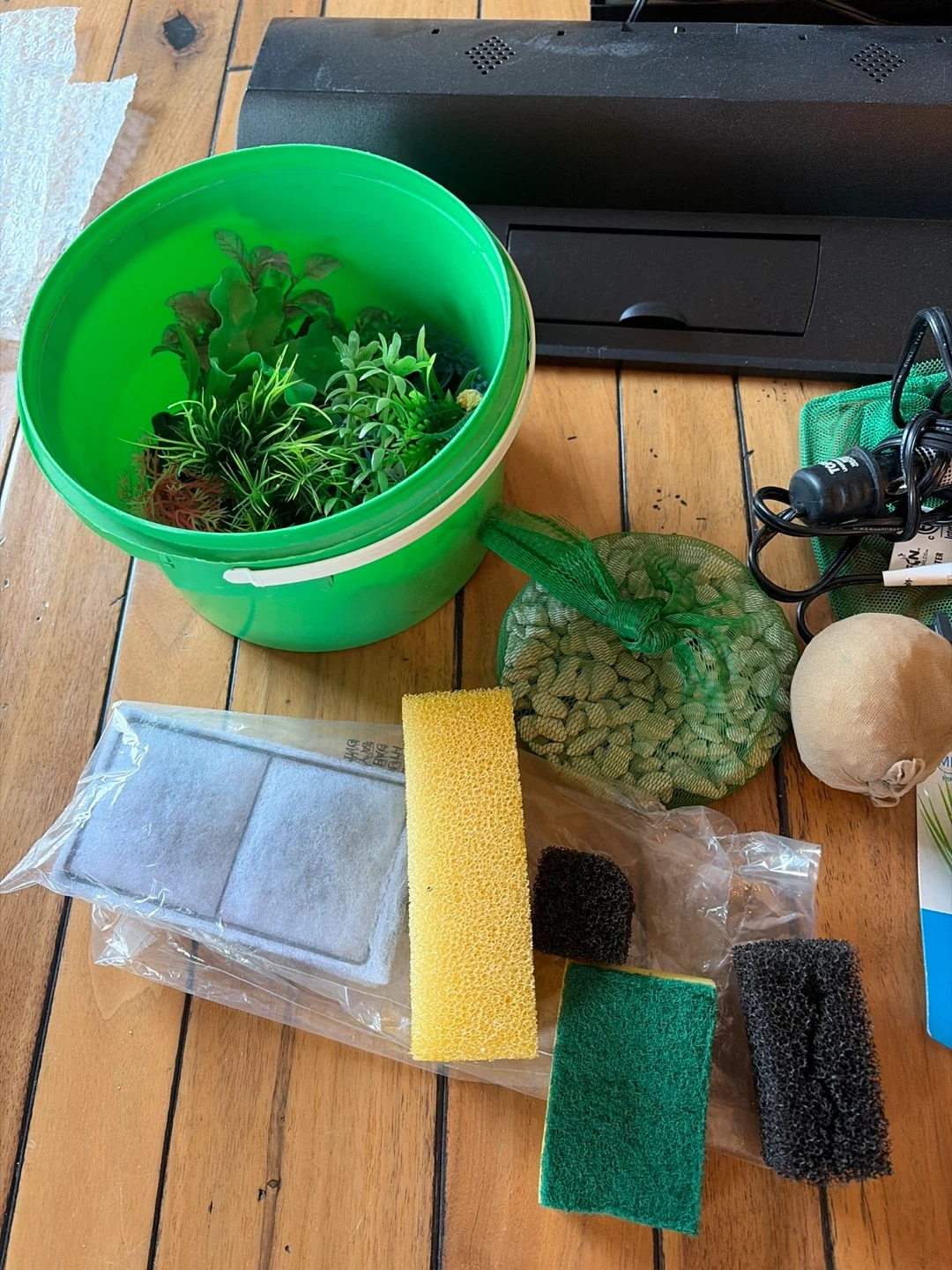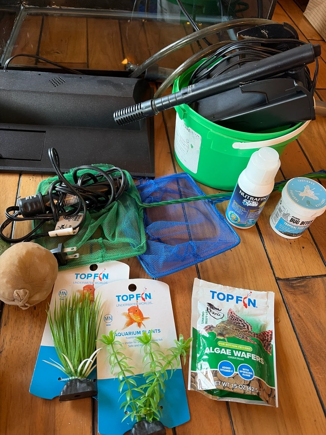 Selling an aquarium with various accessories! Includes the tank, a filter, plants, and other items for your fishy friends