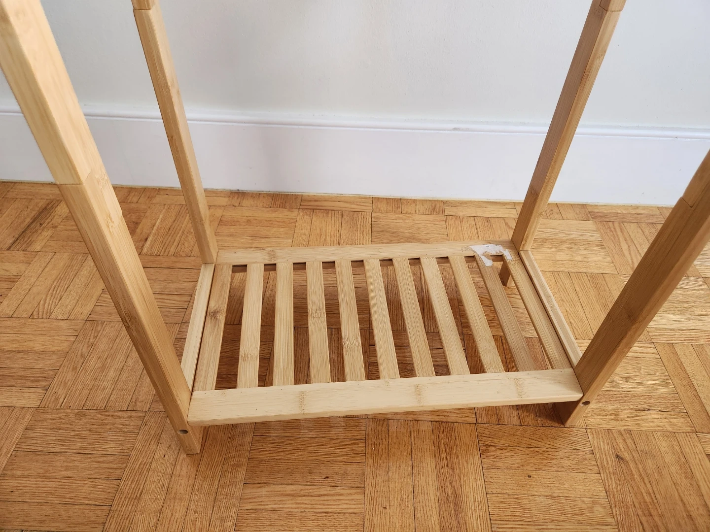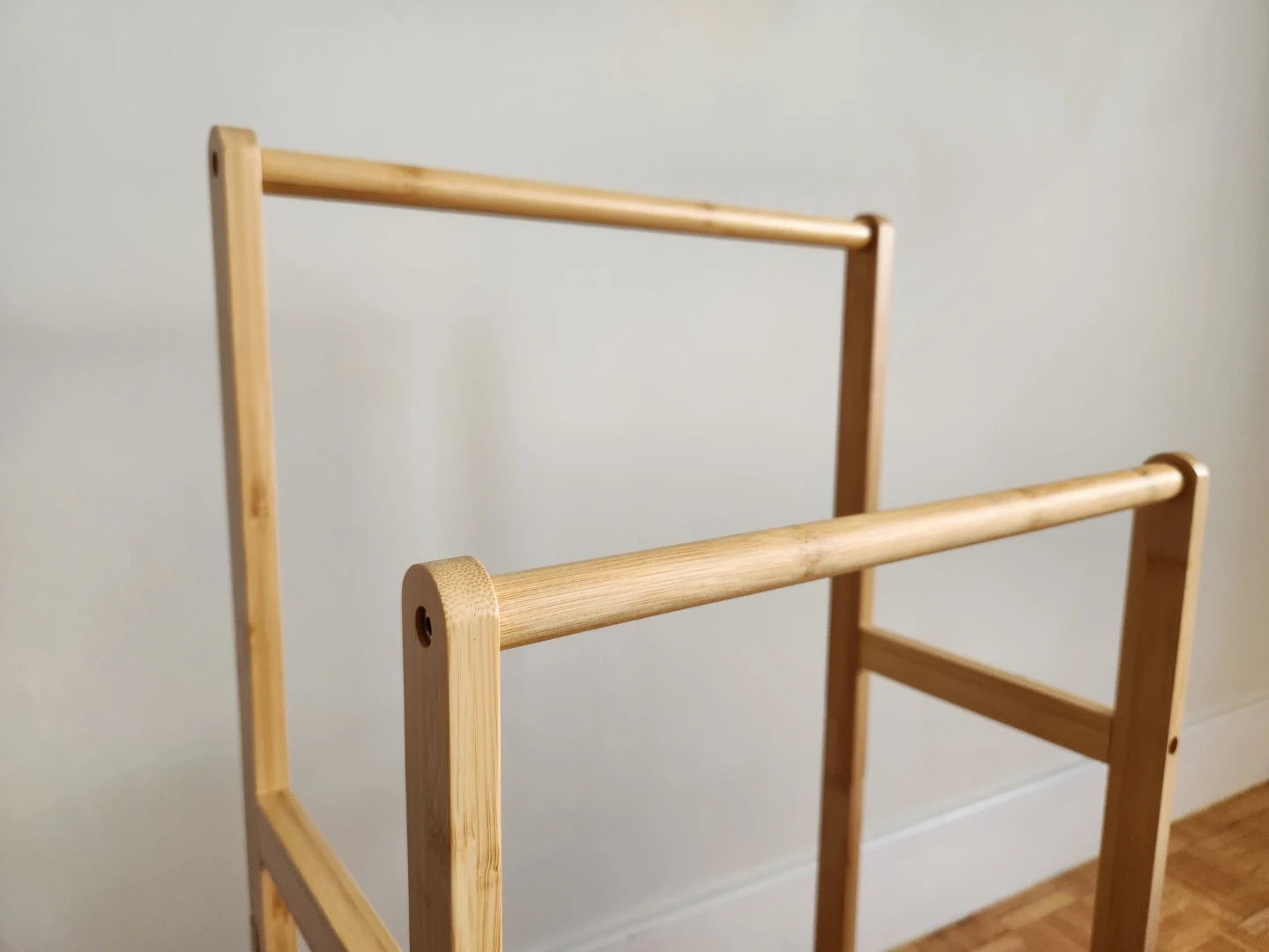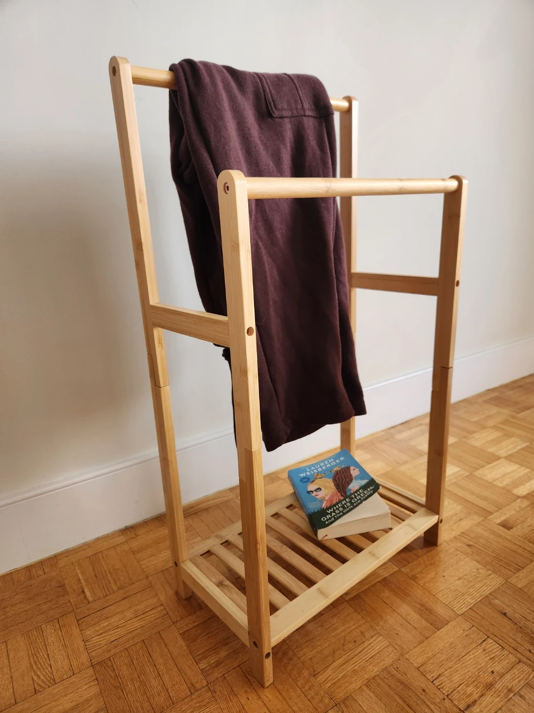 Selling a bamboo clothes rack that's in great condition. It's perfect for organizing your clothes and adding a touch of natural style to your space. The rack is sturdy and easy to assemble, making it a practical addition to any room