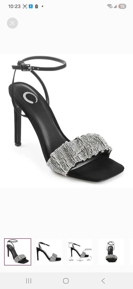 Journee Collection Women Arlette Embellished Ankle Strap Sandals, size: 6.5 Black color.