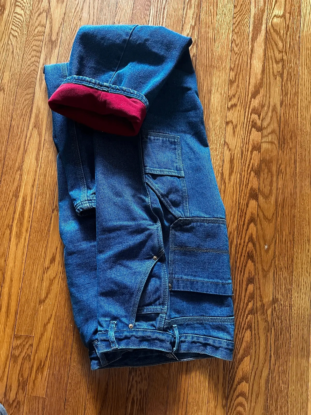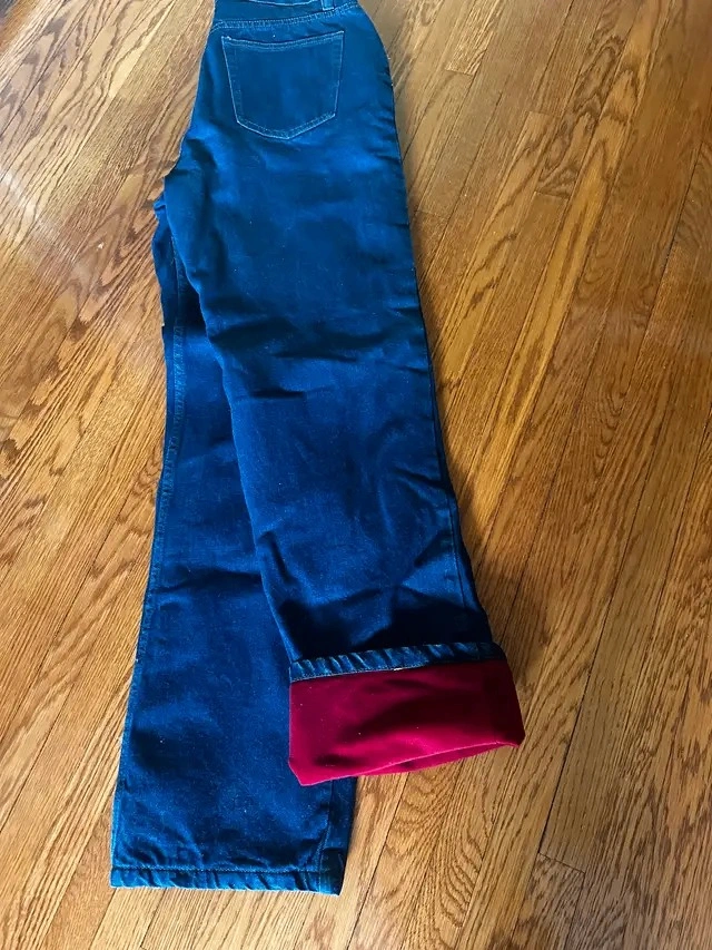 Insulated jeans for winter. Slightly different colors and designs, size 34" (waist) & 34" (length). They're too small for me. Pants for winter, thickened and warm straight-leg trousers, will keep you warm once it gets colder here in Canada. They feel soft and comfortable, and are hand or machine washable, making them suitable for home, outdoor, and travel use.