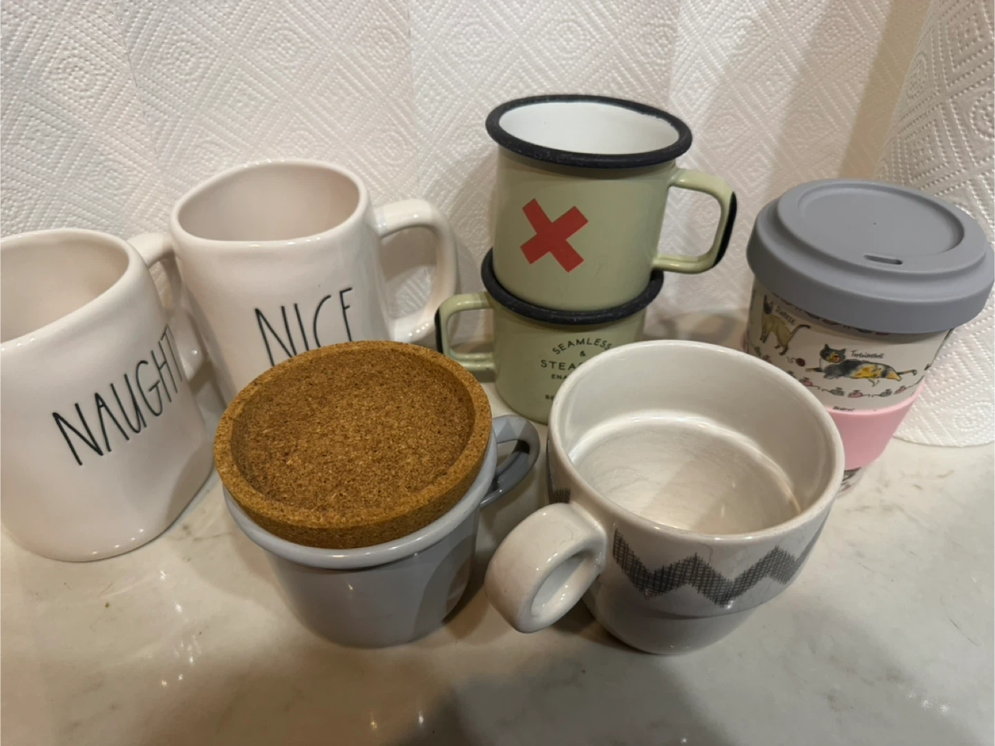 Giving away a variety of mugs. All in “like new” condition besides the Best Made metal mugs which have lost their shiny finish after years of use.