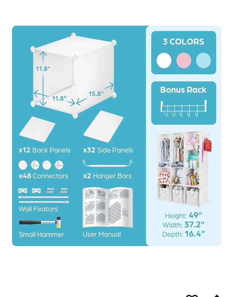 New Modular Nursery Storage Organizer 15 Cubic Feet White