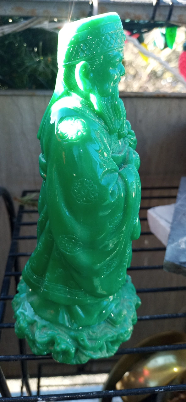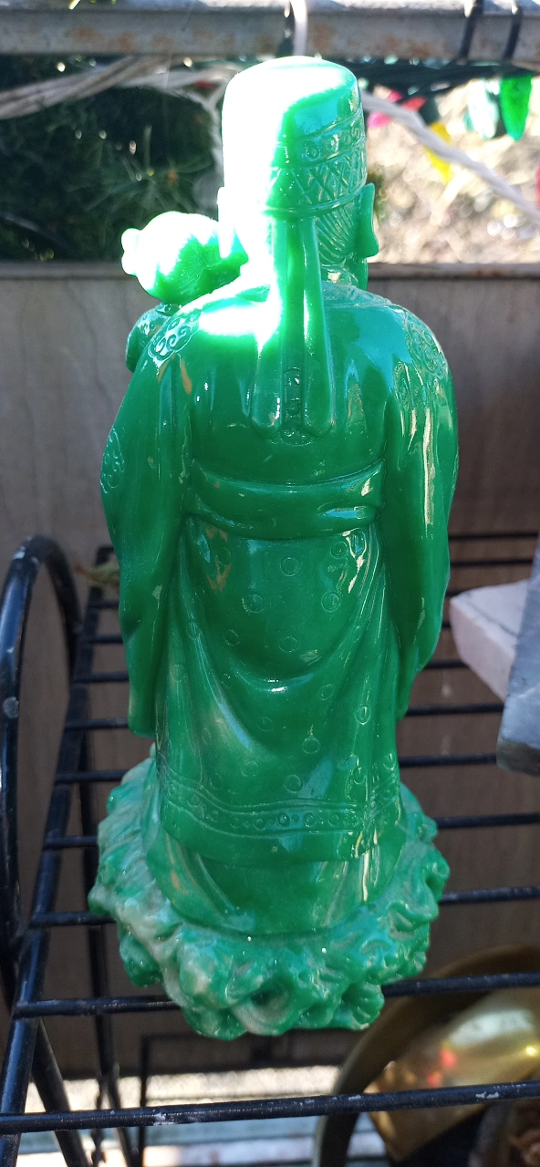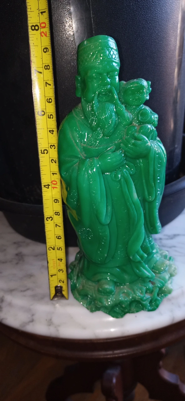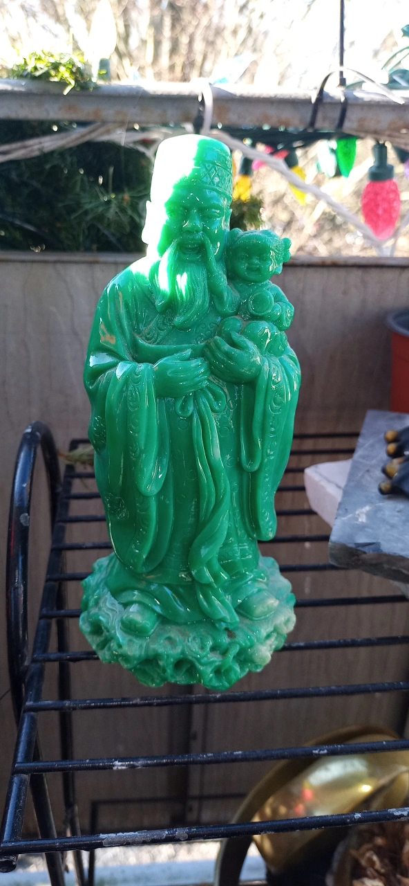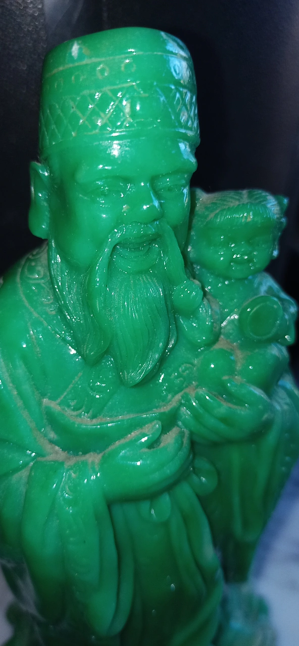 Chinese New year is coming!. Measures about 8 inches tall. Green jadite Resin statue of an emperor holding a child in his arms. Vintage 1960s piece. Like new. A great show piece or gift for luck. Have other vintage pieces for Chinese New year on my site too if interested. Thanks Jim