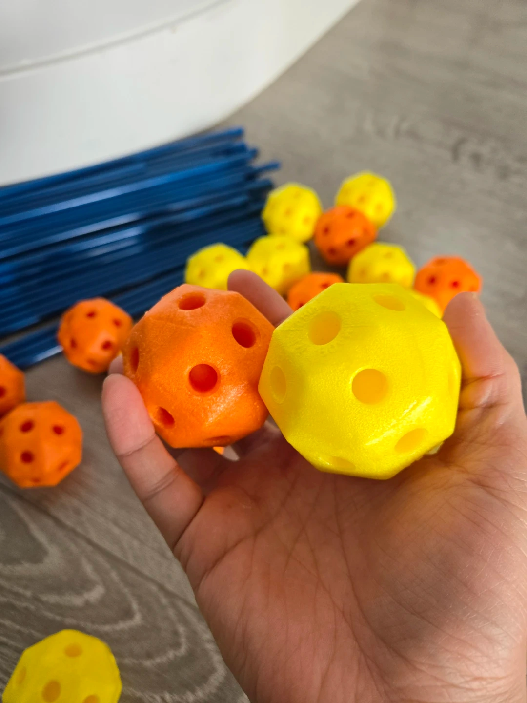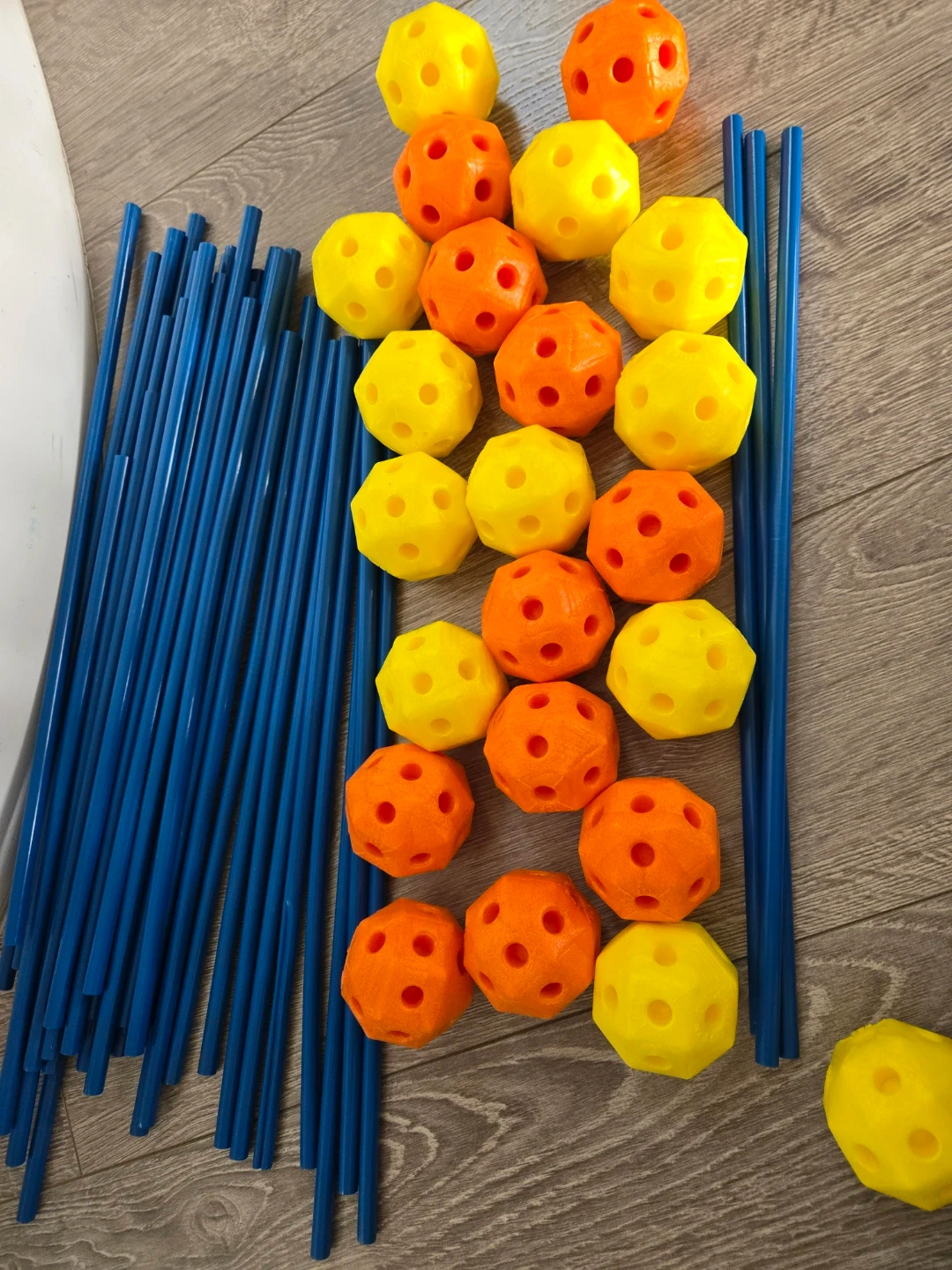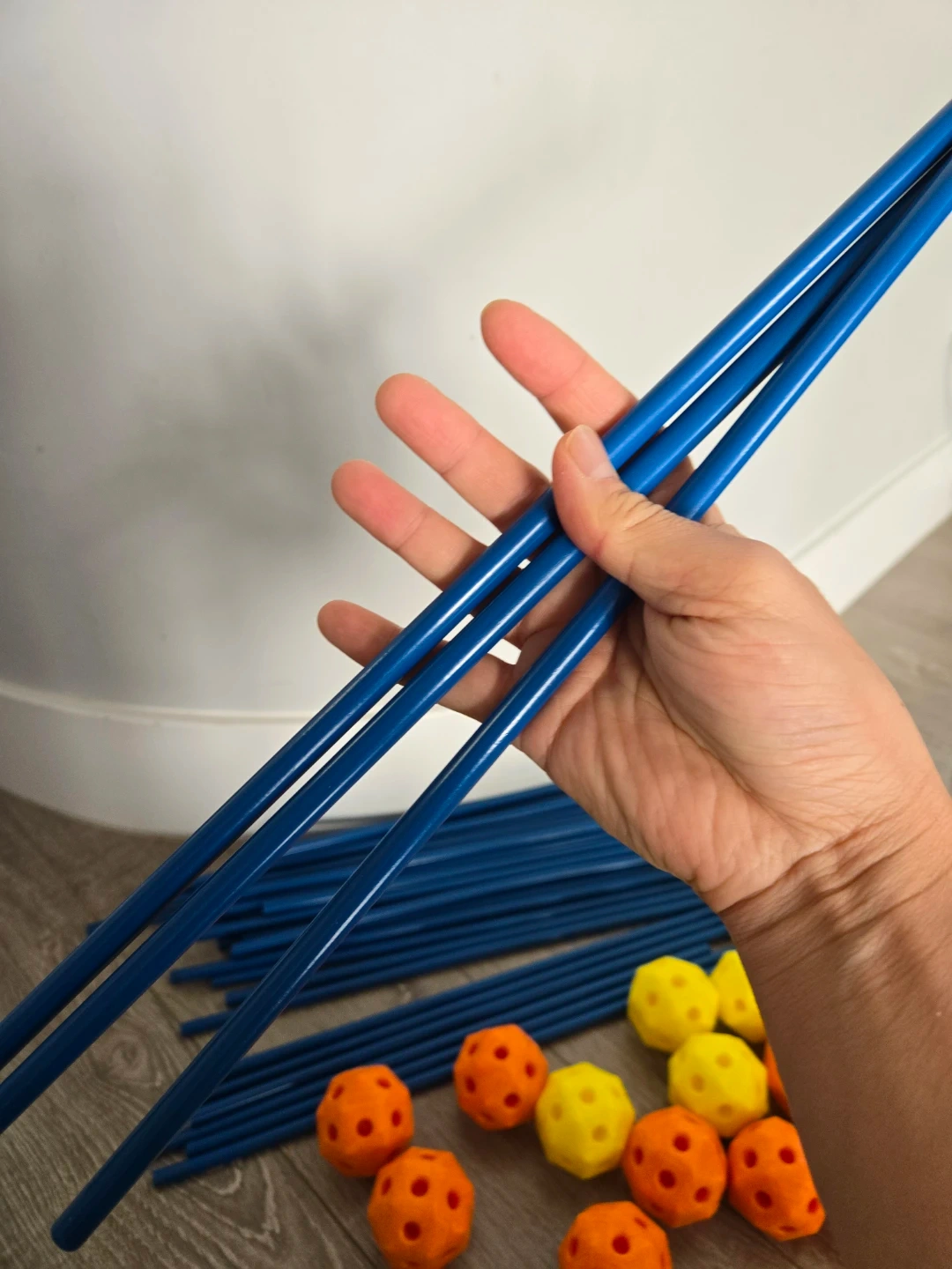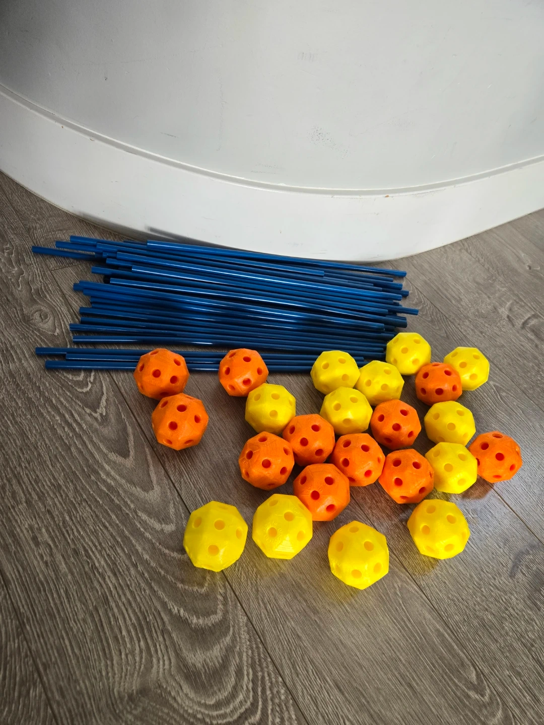 Comes eith 23 balls and 43 sticks. Can be added to other crazy fort set to make bigger structures.