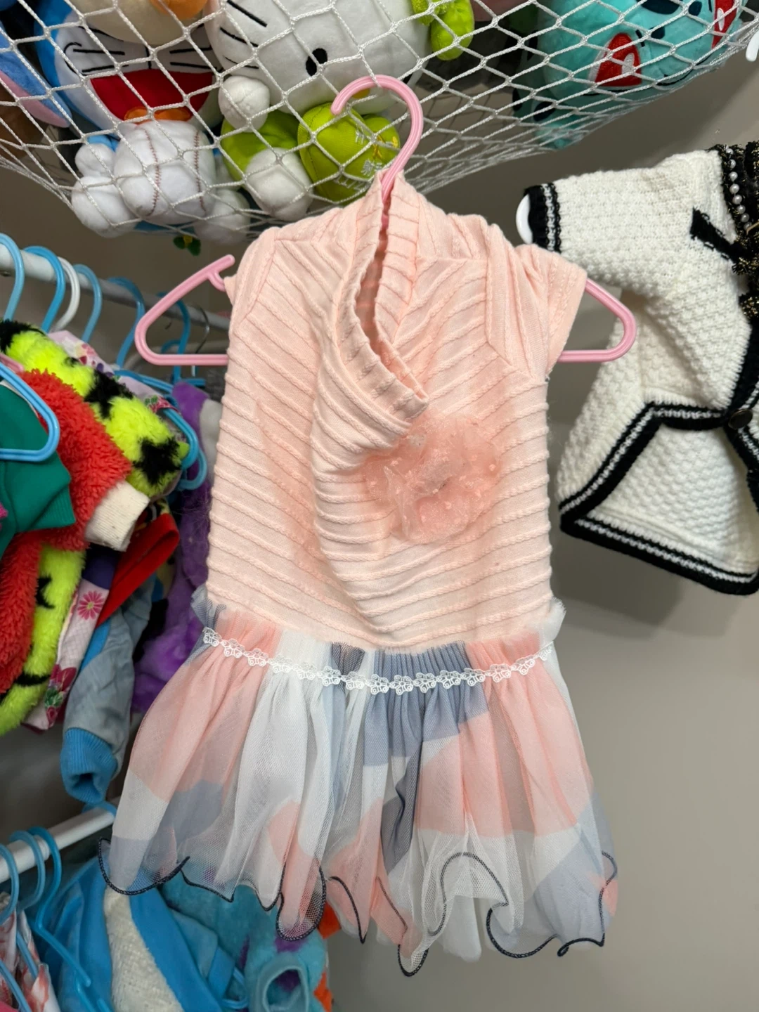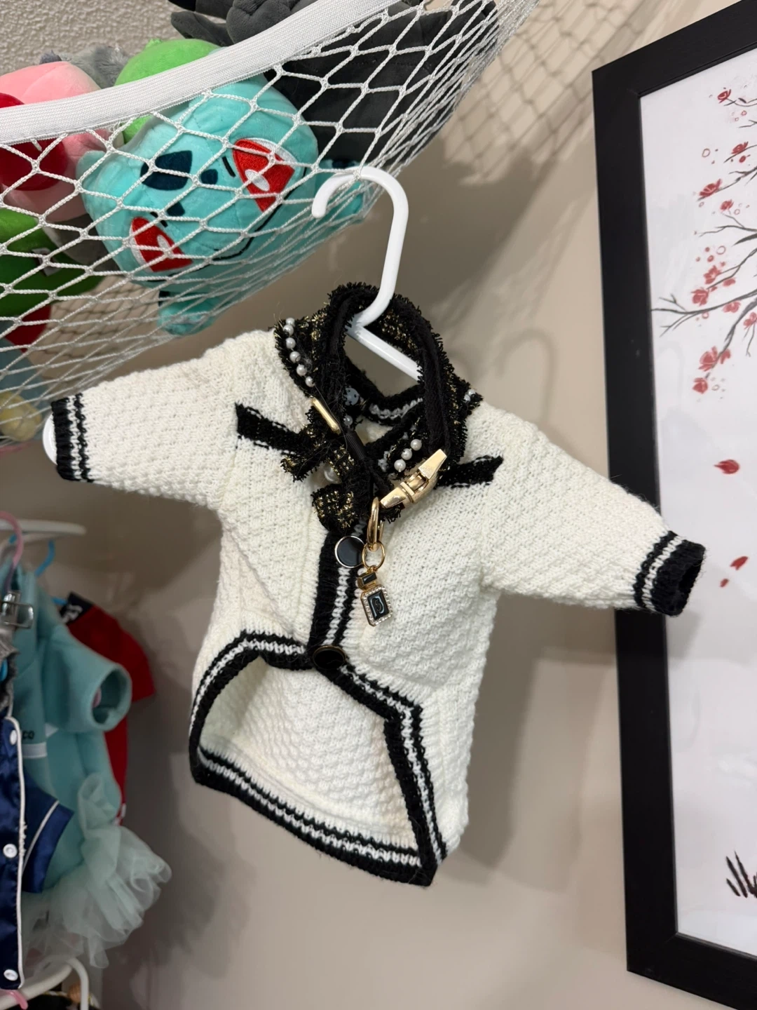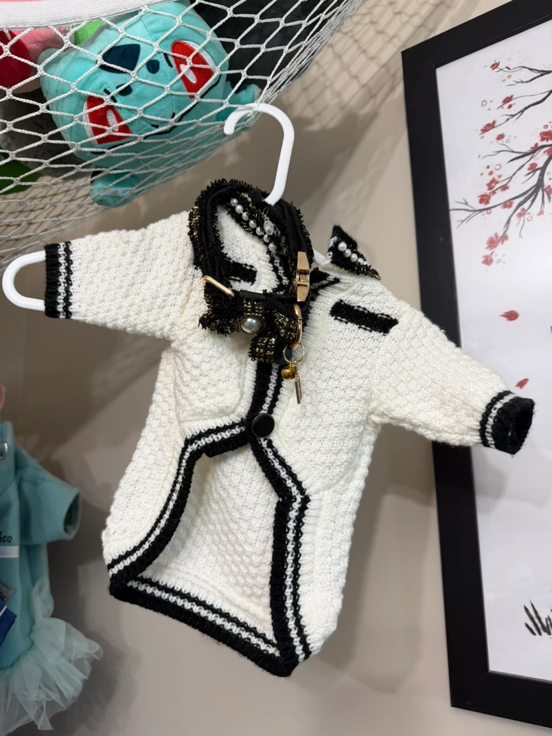 Selling a collection of designer dog clothes. Includes brands like Balenciaga (green), Louis Vuitton (blue), Gucci (blue), and Chanel (white). They're all in great condition and ready for your fashionable furry friend