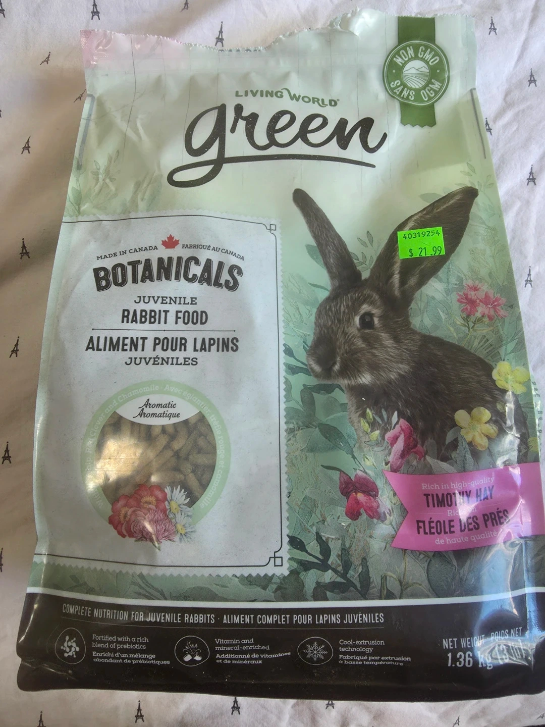 🐰New sealed bags of Living World Green Botanicals Juvenile Rabbit Food (1.36kg) retail for $19.99 CAD at stores like Pet Valu and pet supply sites