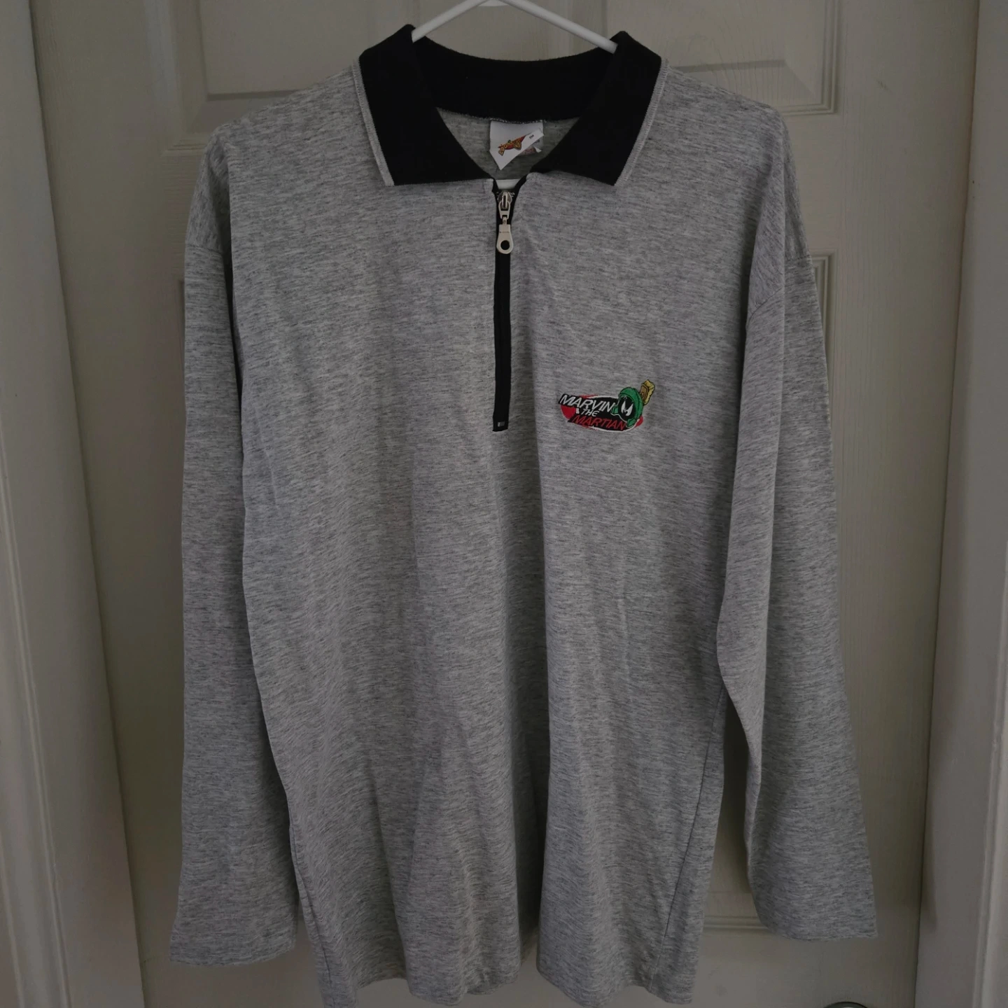 Selling a Looney Tunes polo shirt featuring Marvin the Martian! It's a size Large and made from a blend of 50% polyester and 50% cotton. The colour is a nice heather grey with a black collar. Perfect for any Looney Tunes fan!