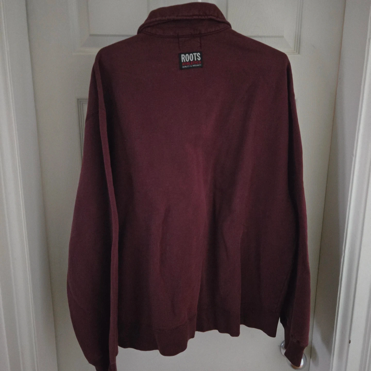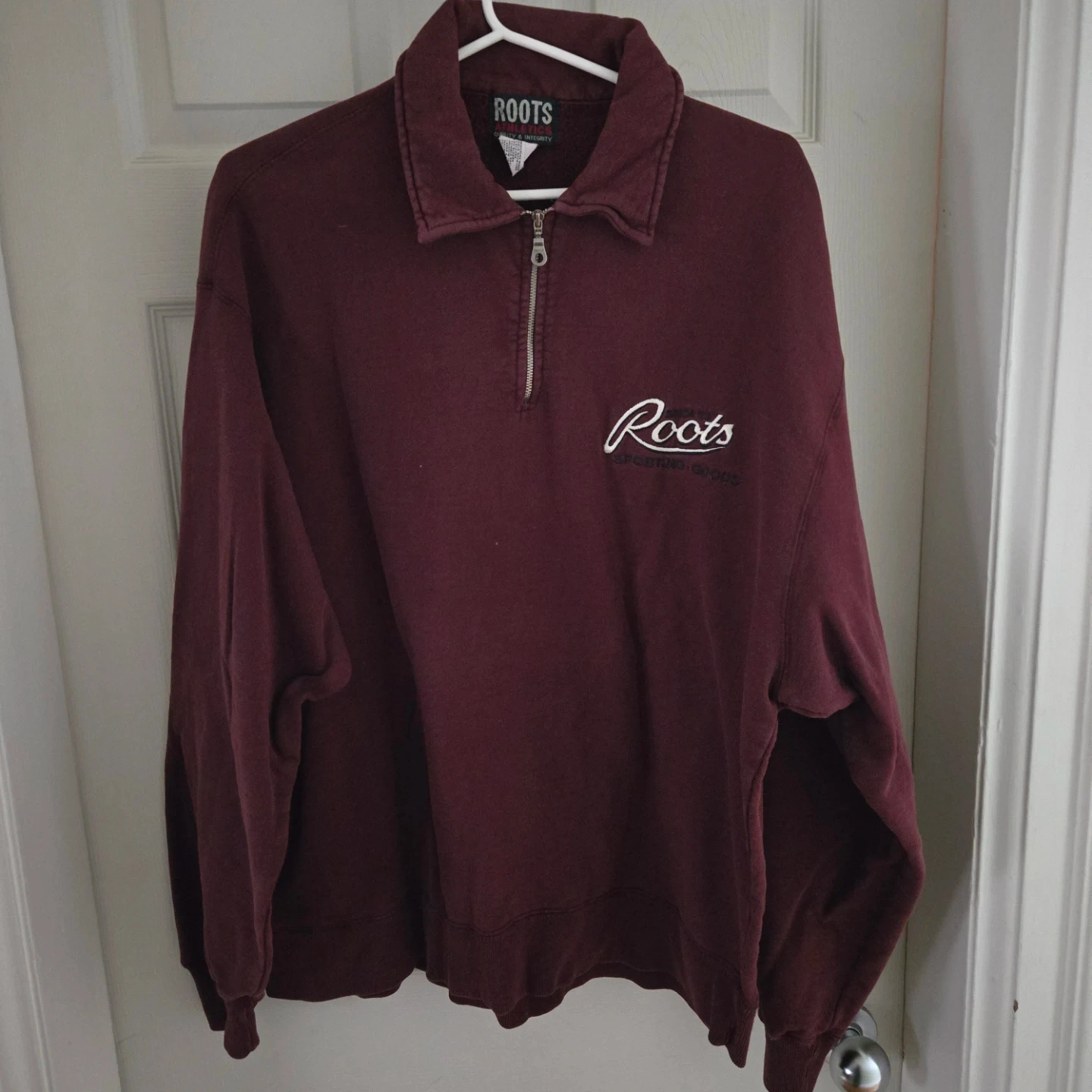 Roots Athletics 1/4 zip pullover in size L/G. It's made of 100% cotton and would be great for layering!