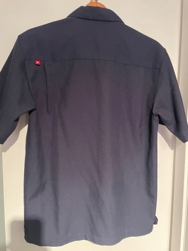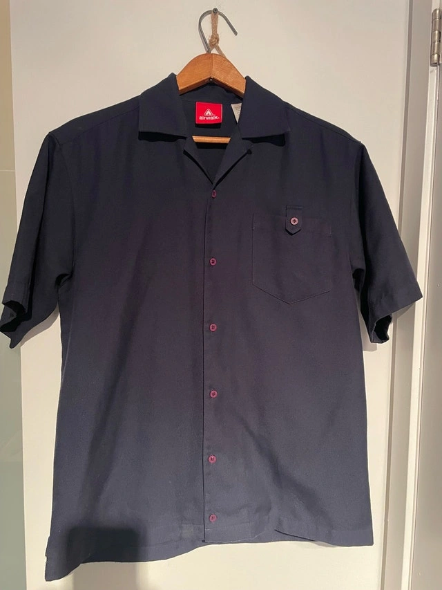 Elevate your casual wardrobe with this stylish Airwalk short-sleeve button-up shirt in size medium. The shirt features a unique design with a front pocket and is in excellent condition. Specifications: Size: Medium Colour: Navy Sleeve Length: Short Sleeve If the ad is up, the shirt is available.