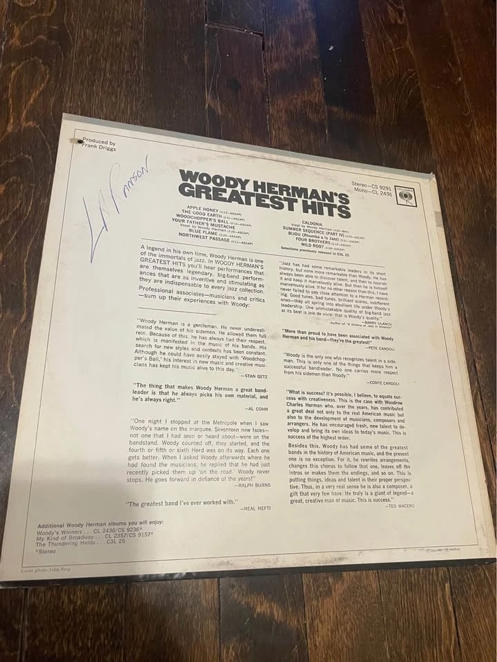 Classic Columbia jazz LP featuring legendary bandleader Woody Herman and his orchestra.