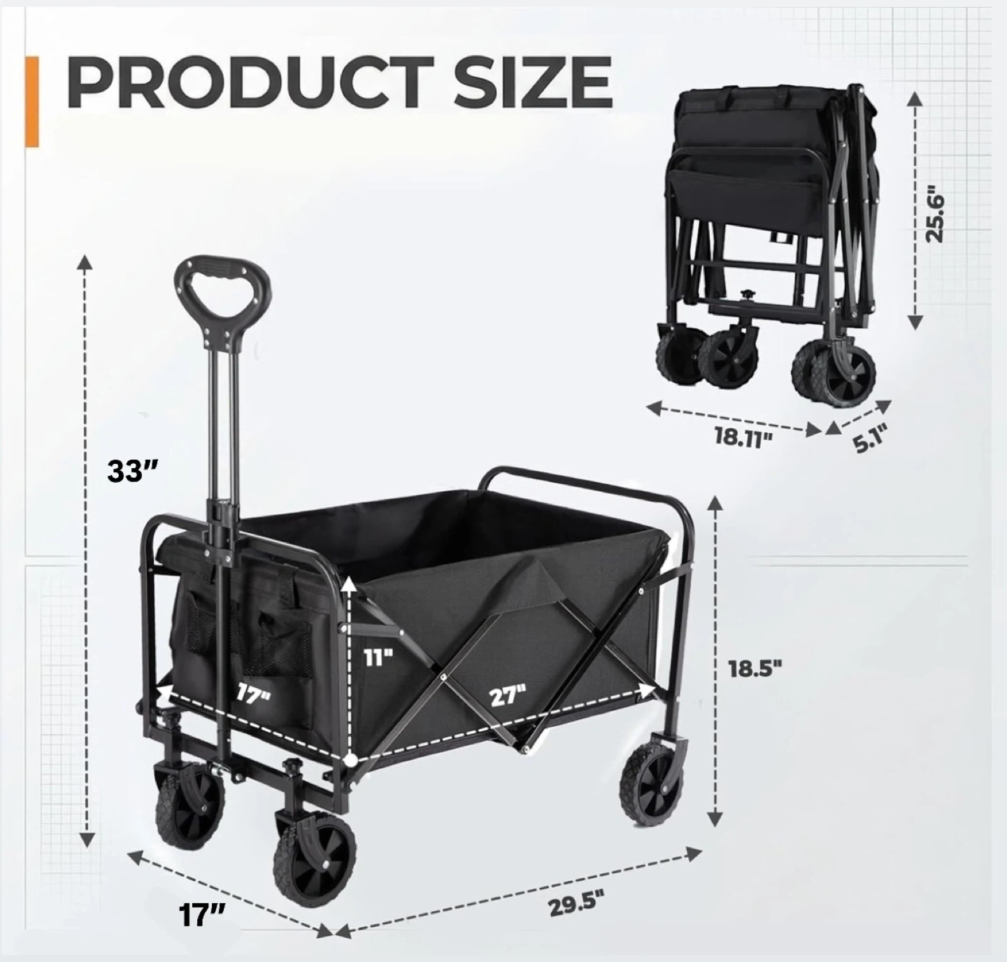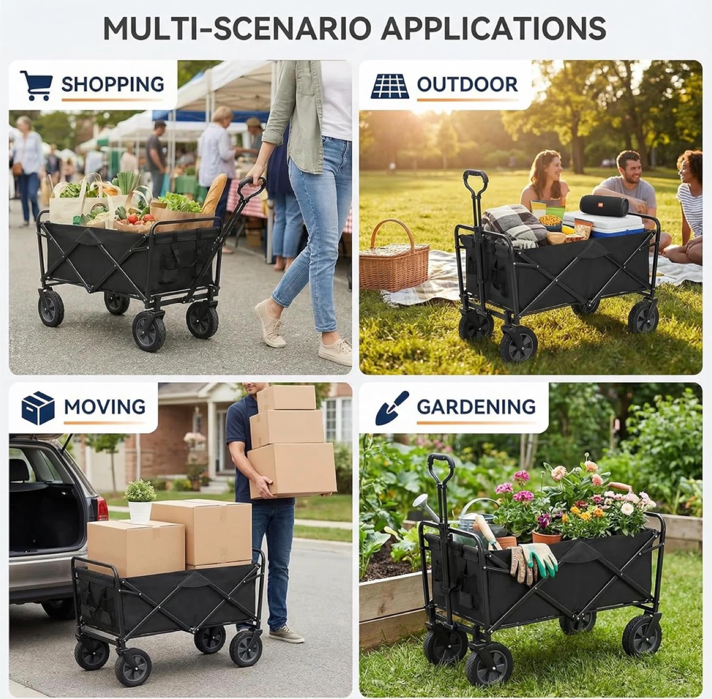 Collapsible Wagon 220 lbs, Heavy Duty Wagon Carts Foldable, Portable Wagons for Groceries, Beach Cart with All-Terrain Wheels & Drink Holders, Utility Wagon for Shopping, Sports, Camping, Black. Price is negotiable!