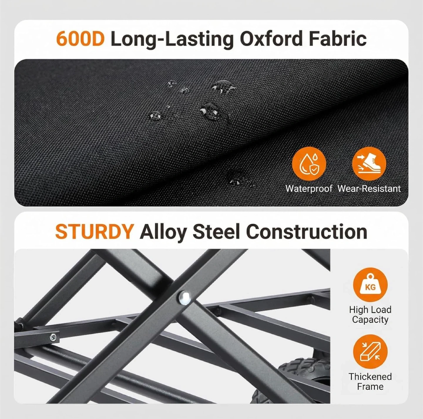 Carro plegable con capacidad de 220 libras (100 kg), resistente, con ruedas todoterreno y portavasos. Ideal para la compra, la playa, deportes, camping, etc. Color negro. ¡Precio negociable!