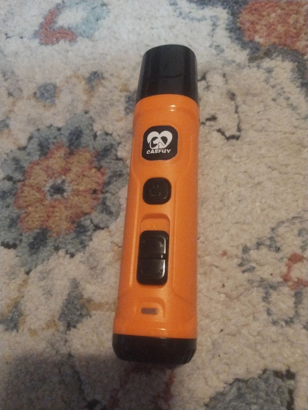 Selling a CASFUY nail grinder in orange. It's in great shape and ready to help keep your pet's nails trim and tidy. It has a charging port and a couple of buttons to control the speed and power. Perfect for home grooming!